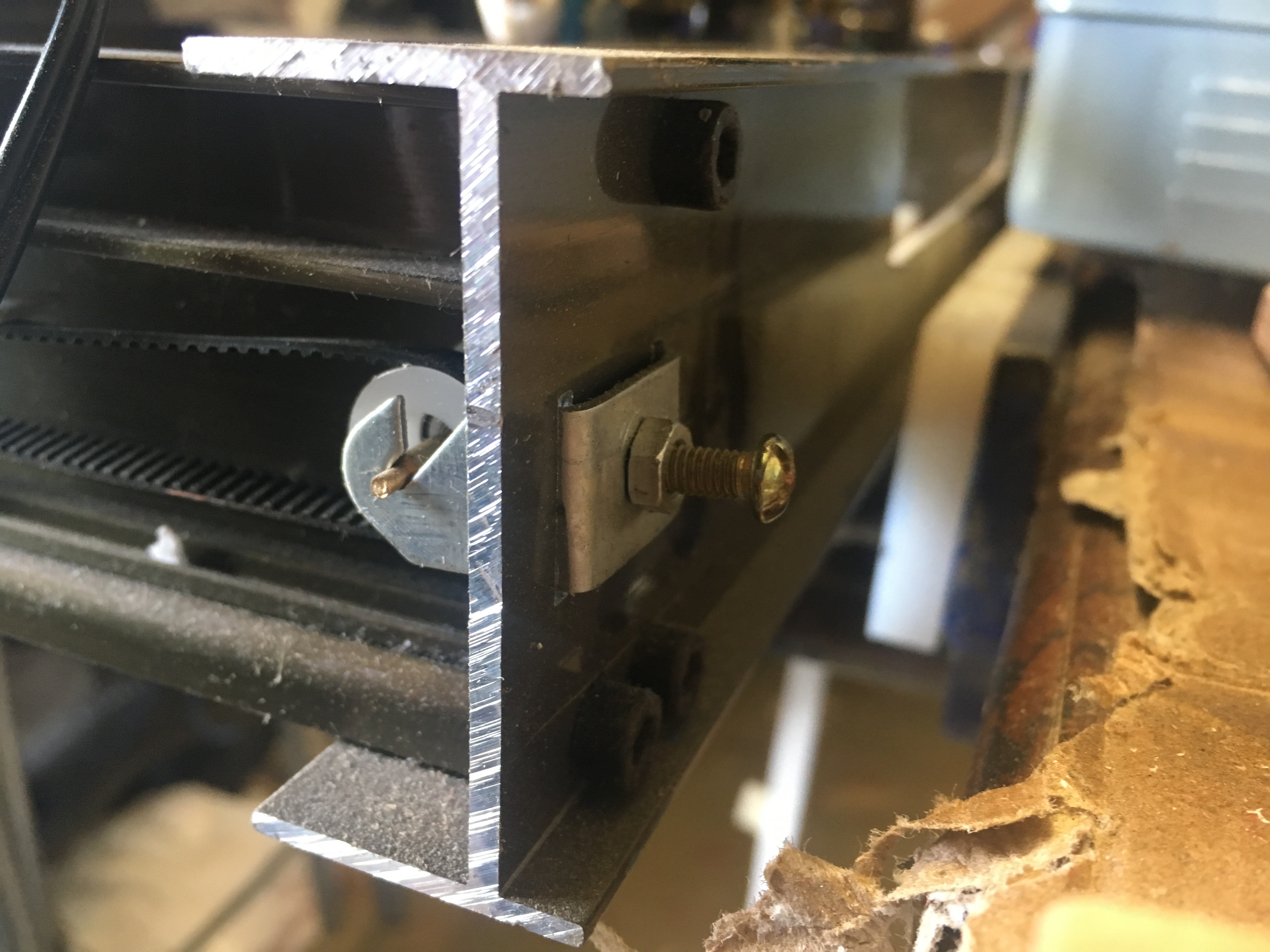 @SirGeekALot to tighten the y-axis belts there are holes in the back of the machine which allow you to stick a long screwdriver through to get to the belt tensioners on either side of the bed.