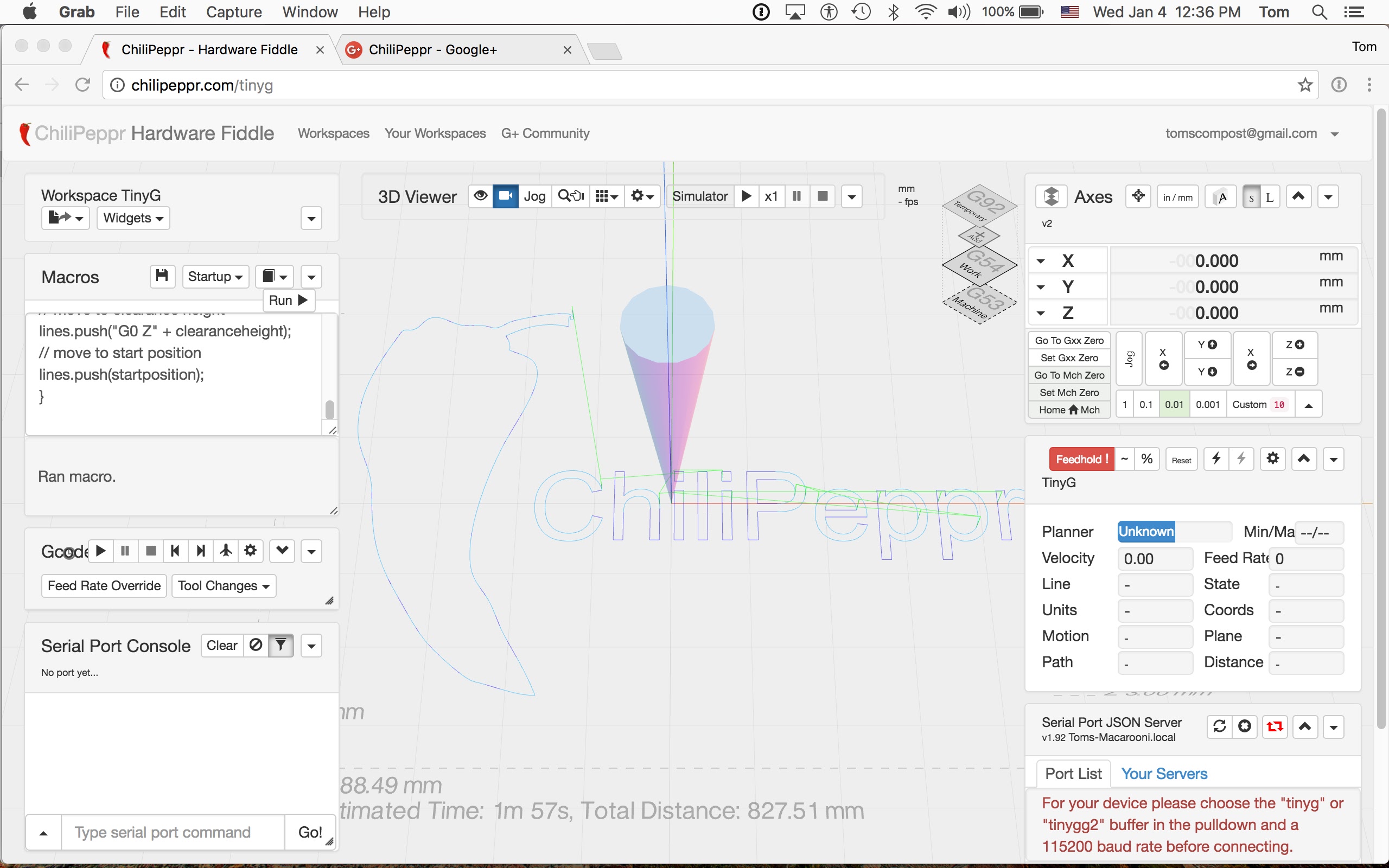 Is it possible I’ve changed something that would cause the macro to not render when I press run? Currently, it all looks like it should but the Chilipeppr file stays in the field. Ive restarted, reloaded reattempted everything I can think of.