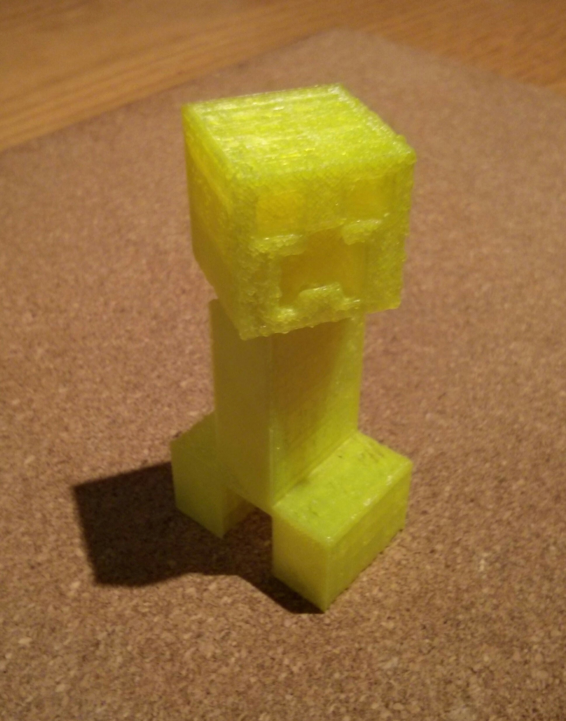 Creeper with fluorescent yellow PLA. Followed the recipe on thingiverse, but the shell was too thin - left it with a nice foamy texture though.