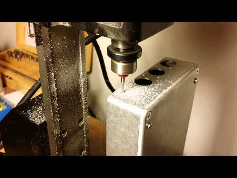 Cutting DIN 5 connector holes in a Hammond 1550M enclosure for a +Synthetos tinyg (V.6, this enclosure won’t work for the later boards!) with a #Sherline. The observant may notice that I bottomed out my Y axis and forced the spiral milling operation to drift North by a mm or so. This is why we measure twice and cut once boys and girls!