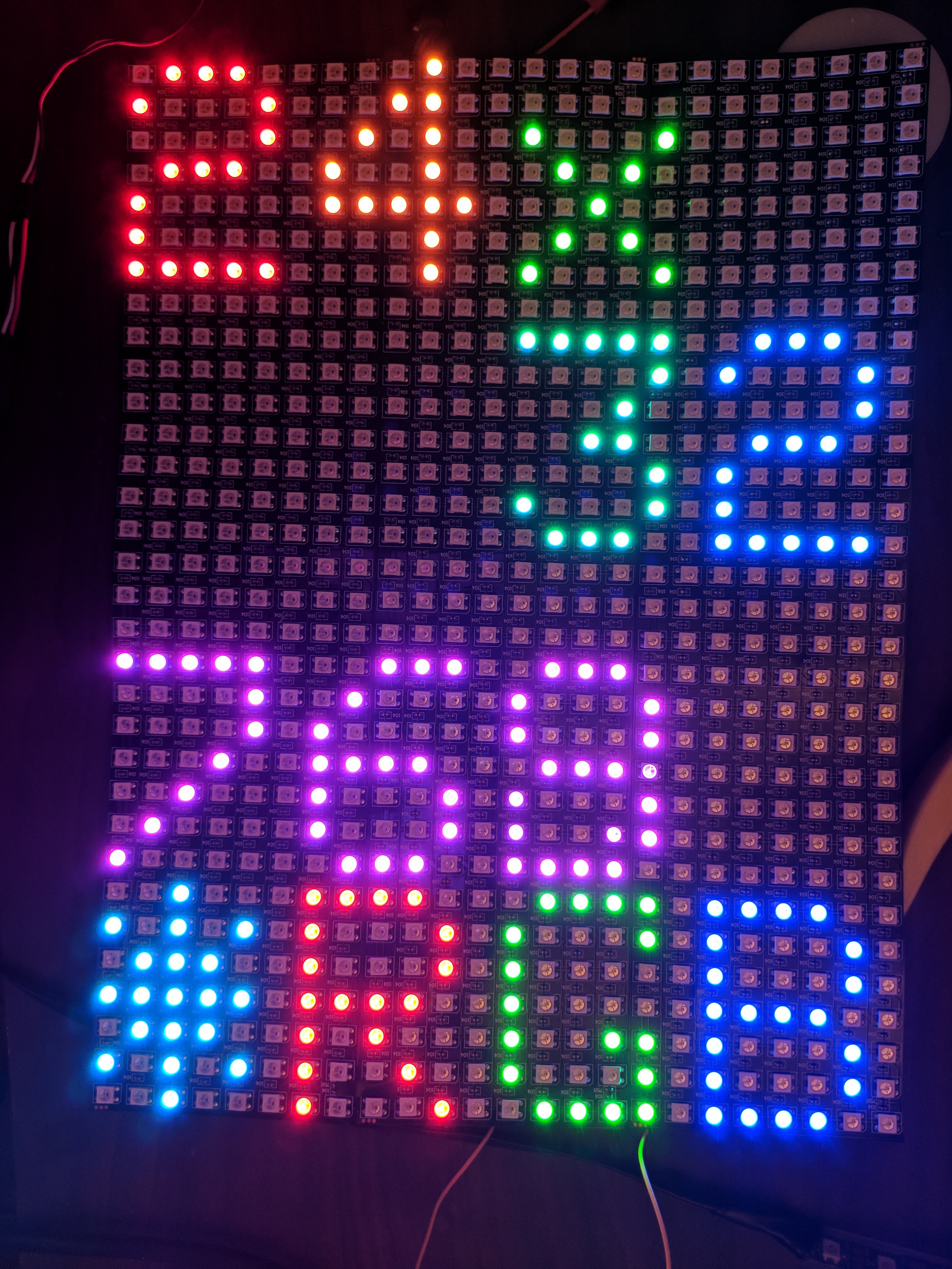 all 3 panels, but I swear, as soon as I put my phone on top to take a picture, it stops. It seems to be that sending 3 data lines to panels that are cross connected for power and ground may cause them more likely to pick up RF noise and create garbage.