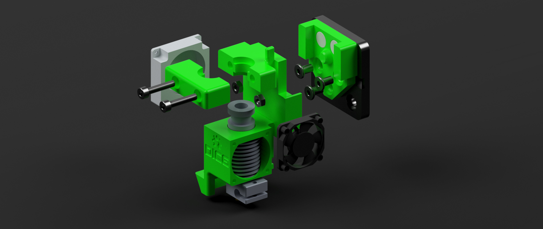 DICE original design uses brass knurled nut heat melted insert method to secure the E3D collar. Since these parts will be printed in SLA, the heated method doesn’t look like appropriate for SLA so I added slots underneath to insert regular M4 nuts.