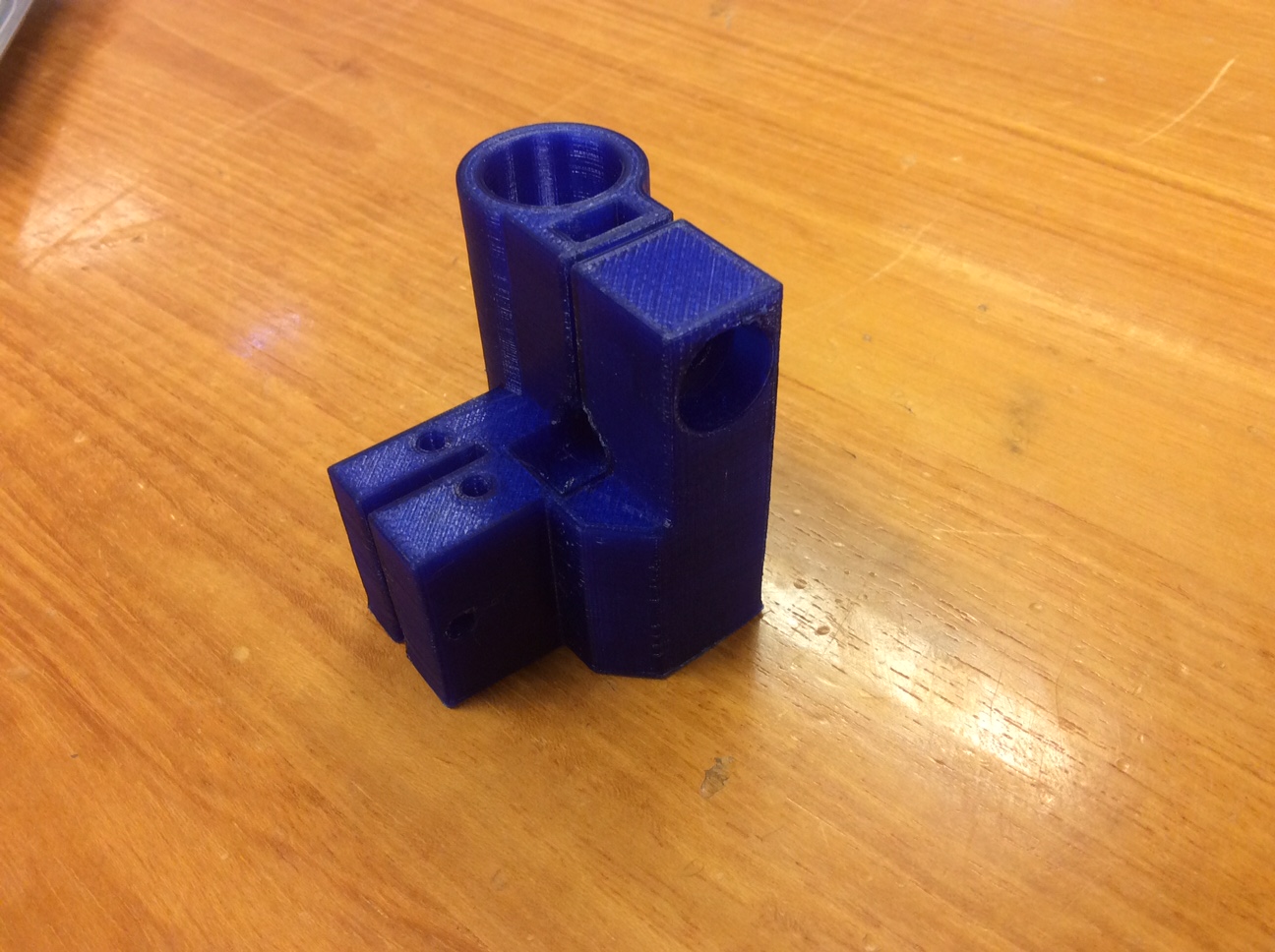 By far the best results Ive got printing this part. A very solid piece… No warps even with this high infill %, and only slight flattening on the bottom probably because the bed is too hot (ABS settings used). I probably can also lower the heat on the printhead, I just wanted to stay within the reccomended parameters for the first print.