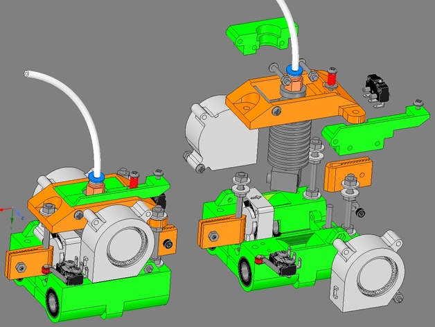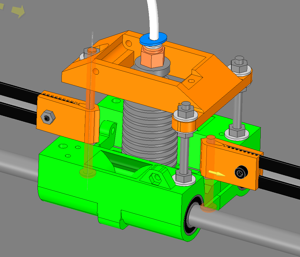 Nope, they are decoupled from the HotEnd Mount as I want that to be able to be adjusted in height and also by 3points leveling if necessary, so the upper holes of the blower fans are not used. I am still pondering how to only fasten the blowers to the base carriage…