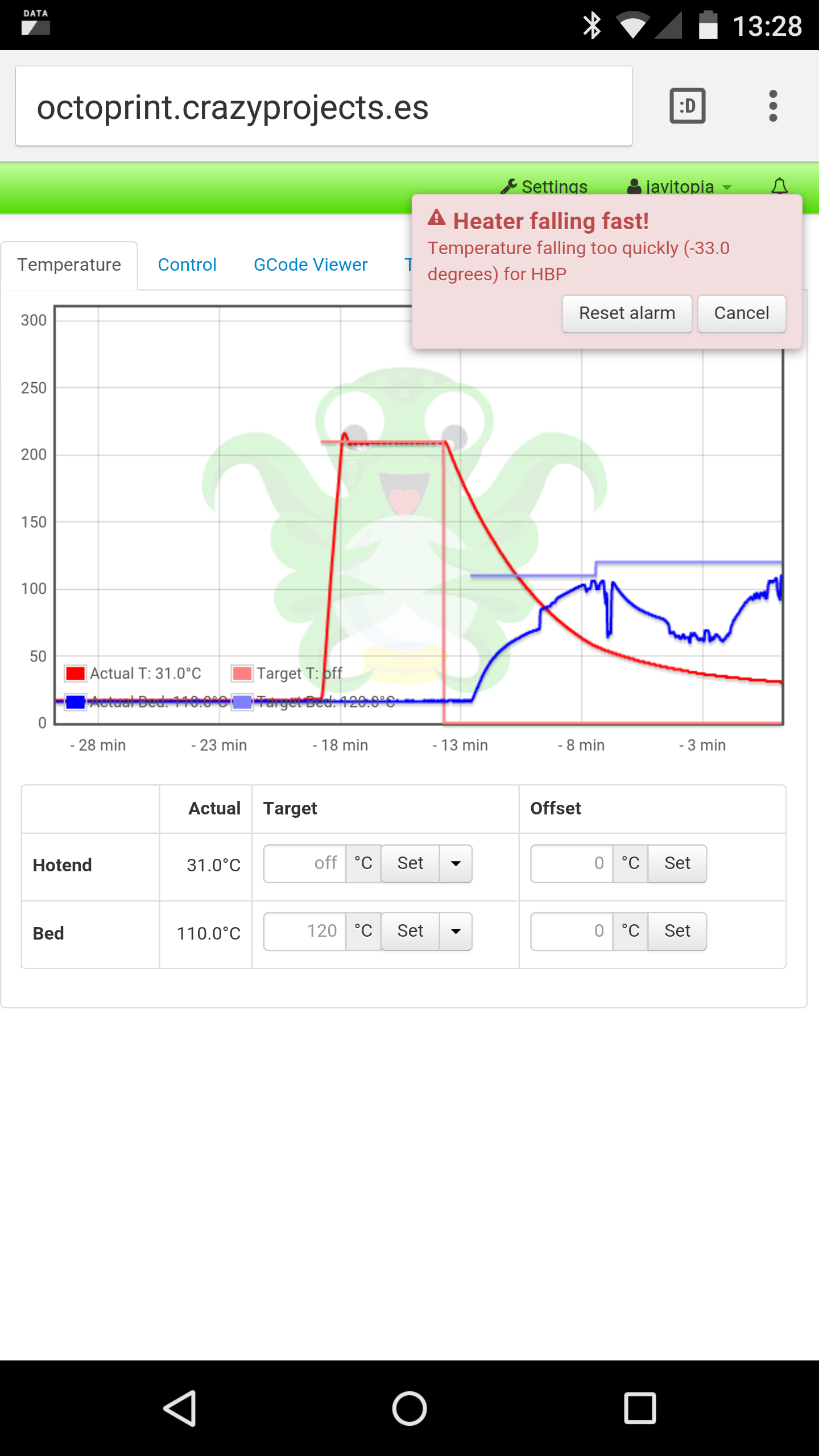I’m talking about the heat bed, with these sudden spikes or valleys. The heat bed is a enormous sheet of aluminum, so it’s imposible that it cools that fast, and it’s static (since it’s a delta) so I don’t think the cable problem is also pretty unlikely.