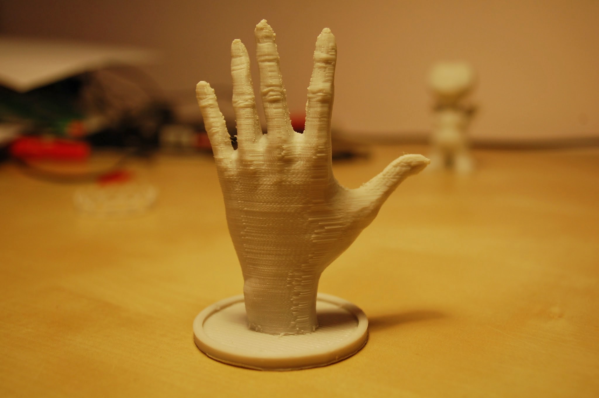 For retraction,suggest to 2.5mm, and use 0.4mm nozzle, with Cura for slicing. Also the speed for printing finger should be low. Can adjust it with LCD control pannel.