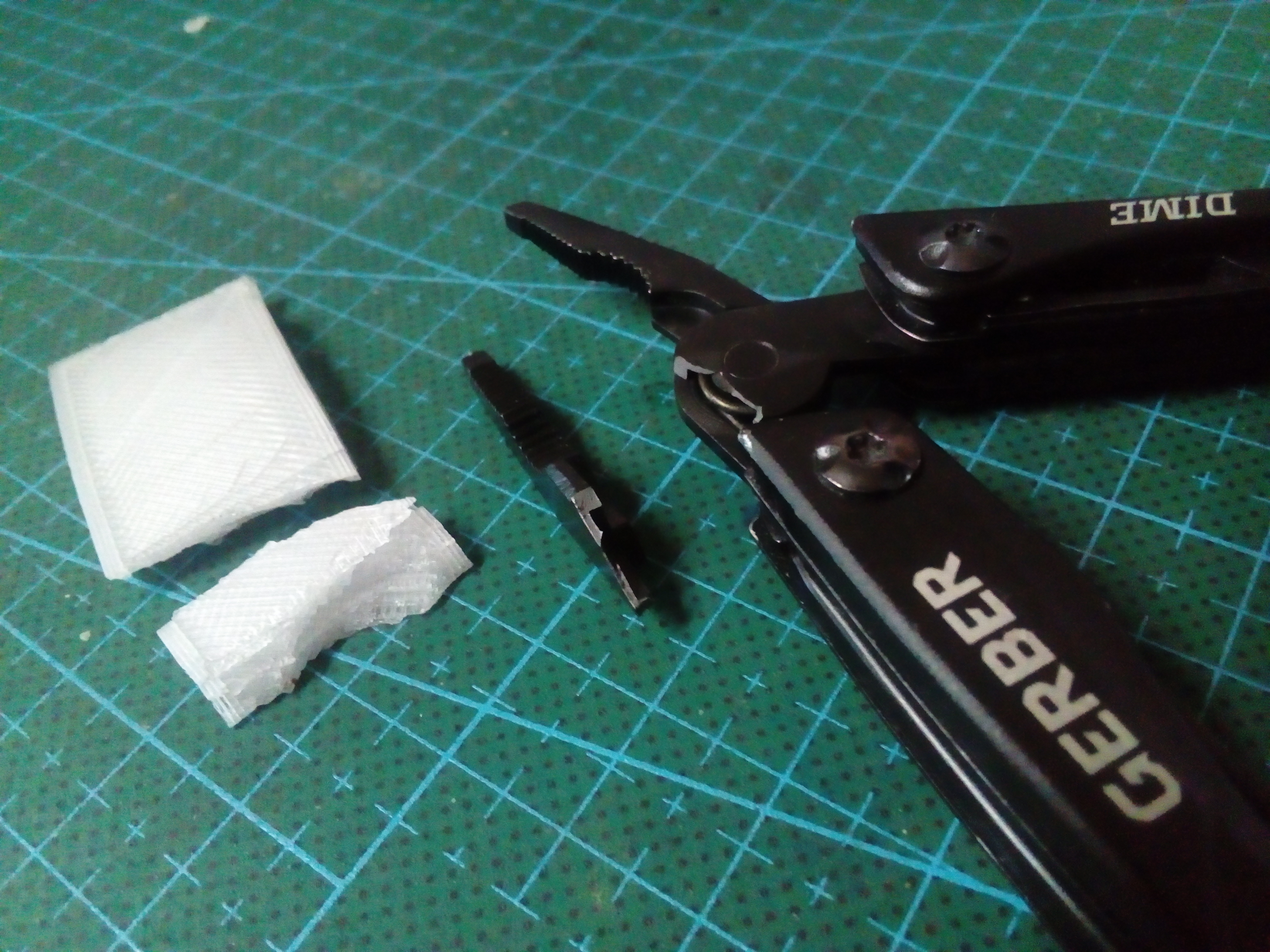 Fooling around trying the PETG filament I got recently, print some solid fill piece and try to break it with multitool, I know I know keychain multitool is for really light duty but still…