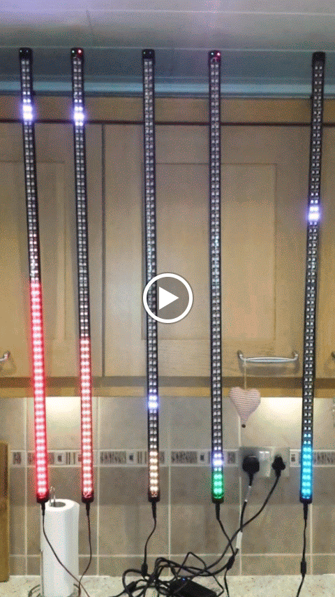 Each stick is a meter long with a built in Arduino Nano driving 2 strips of WS2812 x60.