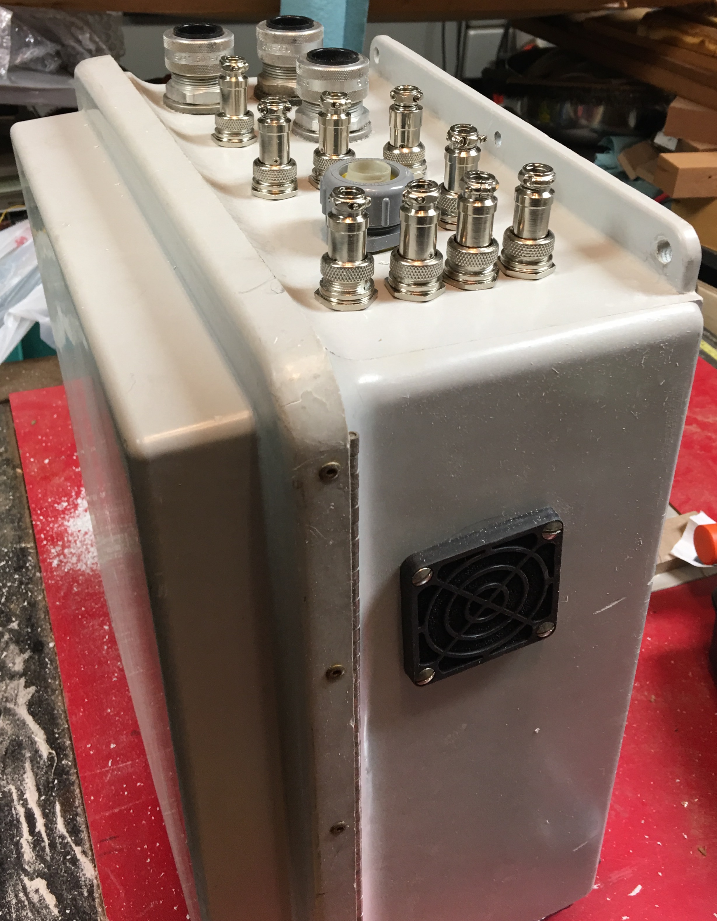 The invert front panel will be detached and mounted on the front panel of the box. This will let me mount the inverter upside down so its fan will blow up.