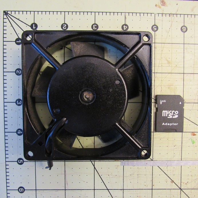 As cold as it is in my workshop right now, I don’t even need that fan running right now with small jobs, but I do want to replace it ASAP. This fan has NO markings on it, aside from a Chinese QC sticker. It’s housed in a black metal frame rather than a plastic frame. I’m wondering if I can just replace it with a standard DC PC cooling fan. I have a whole drawer full of different sizes.