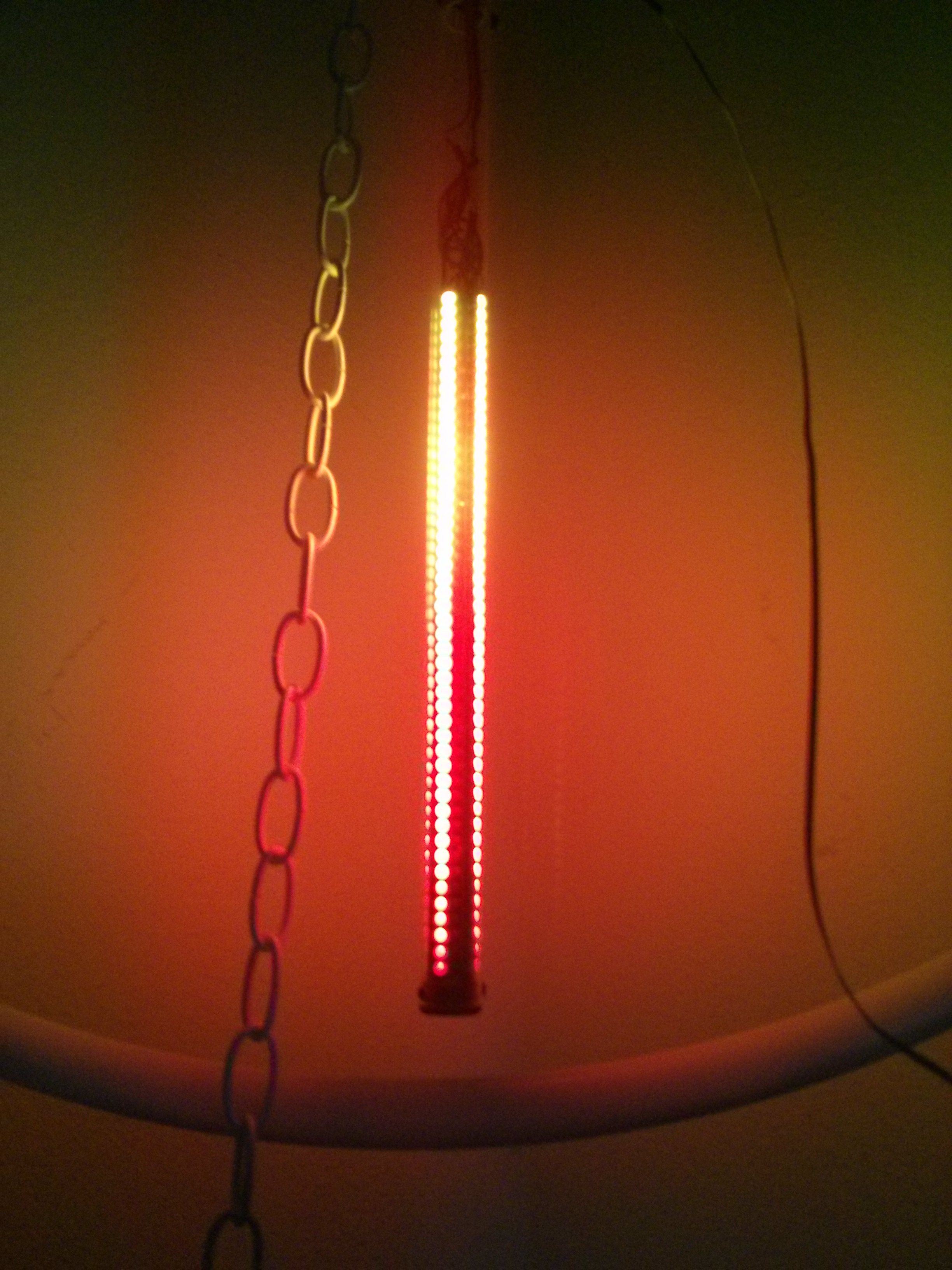Eh, no. Only because it’s only the strips right now. The controller is still sitting on a breadboard. But, imagine four strips, arranged in a hollow square formation. They’re LPD8806 drivers so four wires for each strip. Their tied together so I only have to deal with one single pair of DATA and CLK.