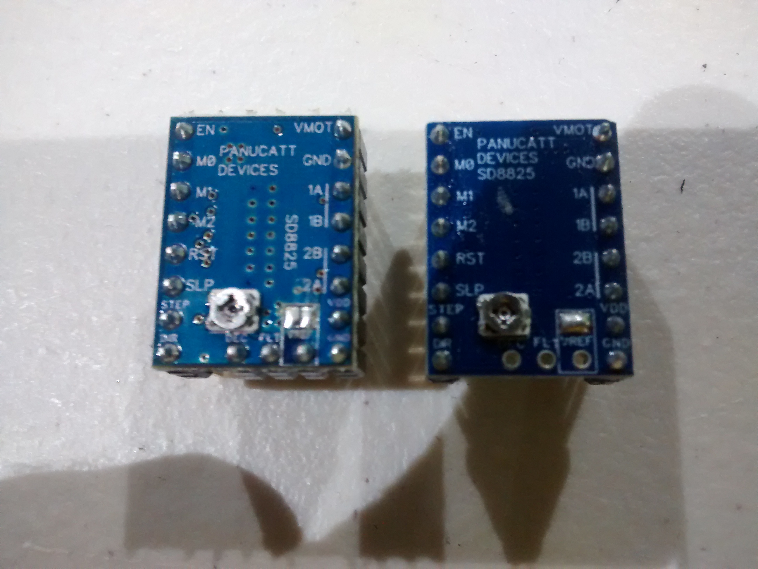 @Eclsnowman , as promised. Pictures of the Azteeg x3 1.0 and 2.0; headers, and modifications shown. Left is modified, notice solder blob has been wicked up on the left one above the vref pin. You can see the female headers added onto the 2.0 board as well.