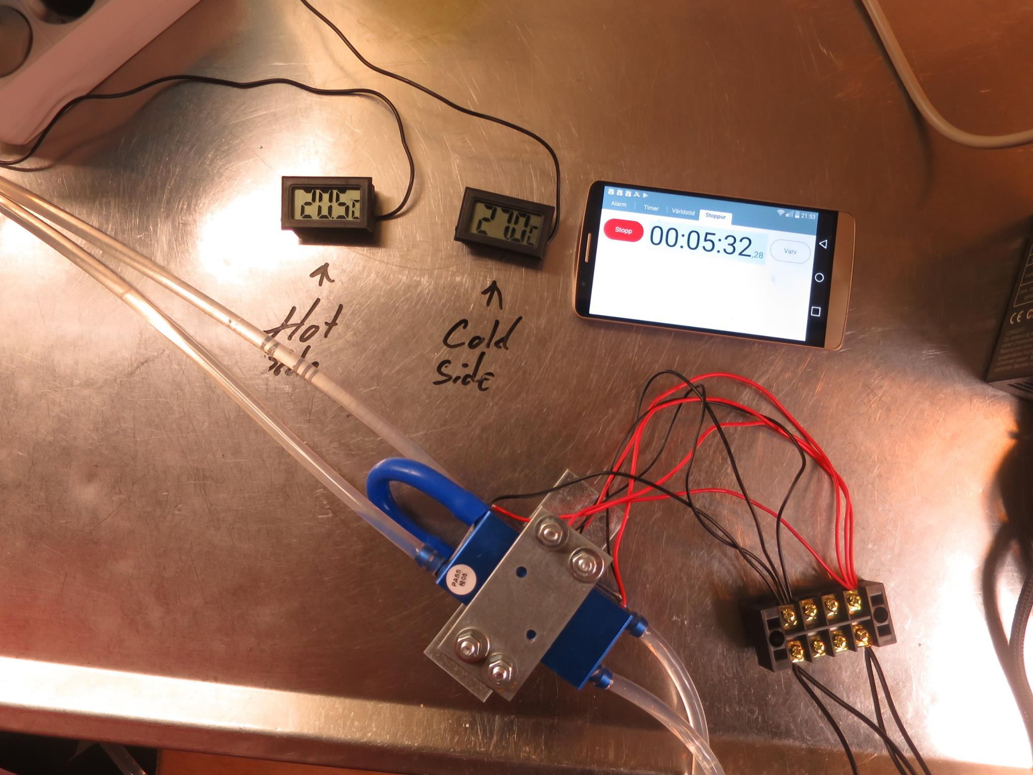 First test was back-asswards, had the peltiers flipped the wrong way