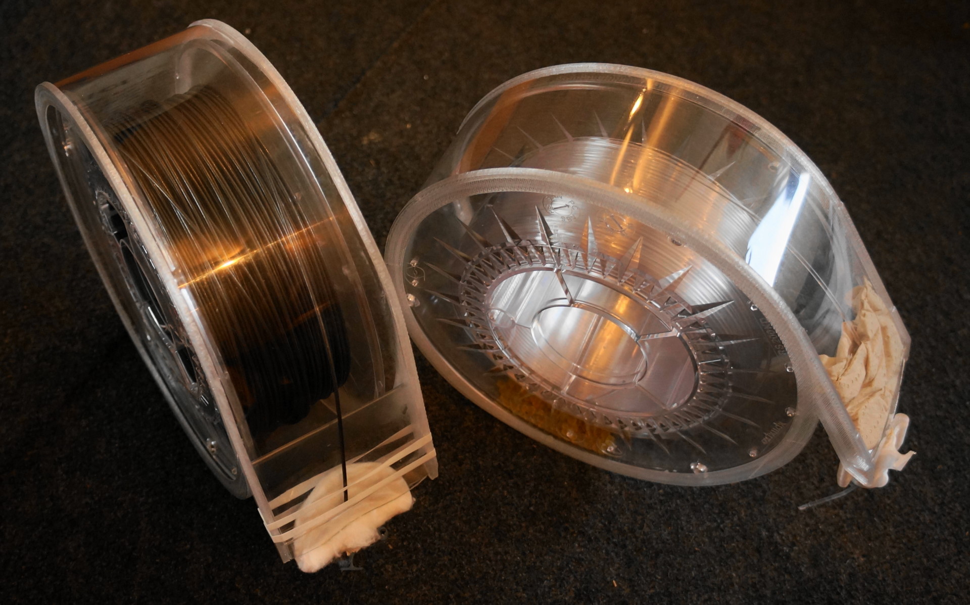 After I learned that humidity must keept low for good printing results, I made these cartridges for my filamentspool.