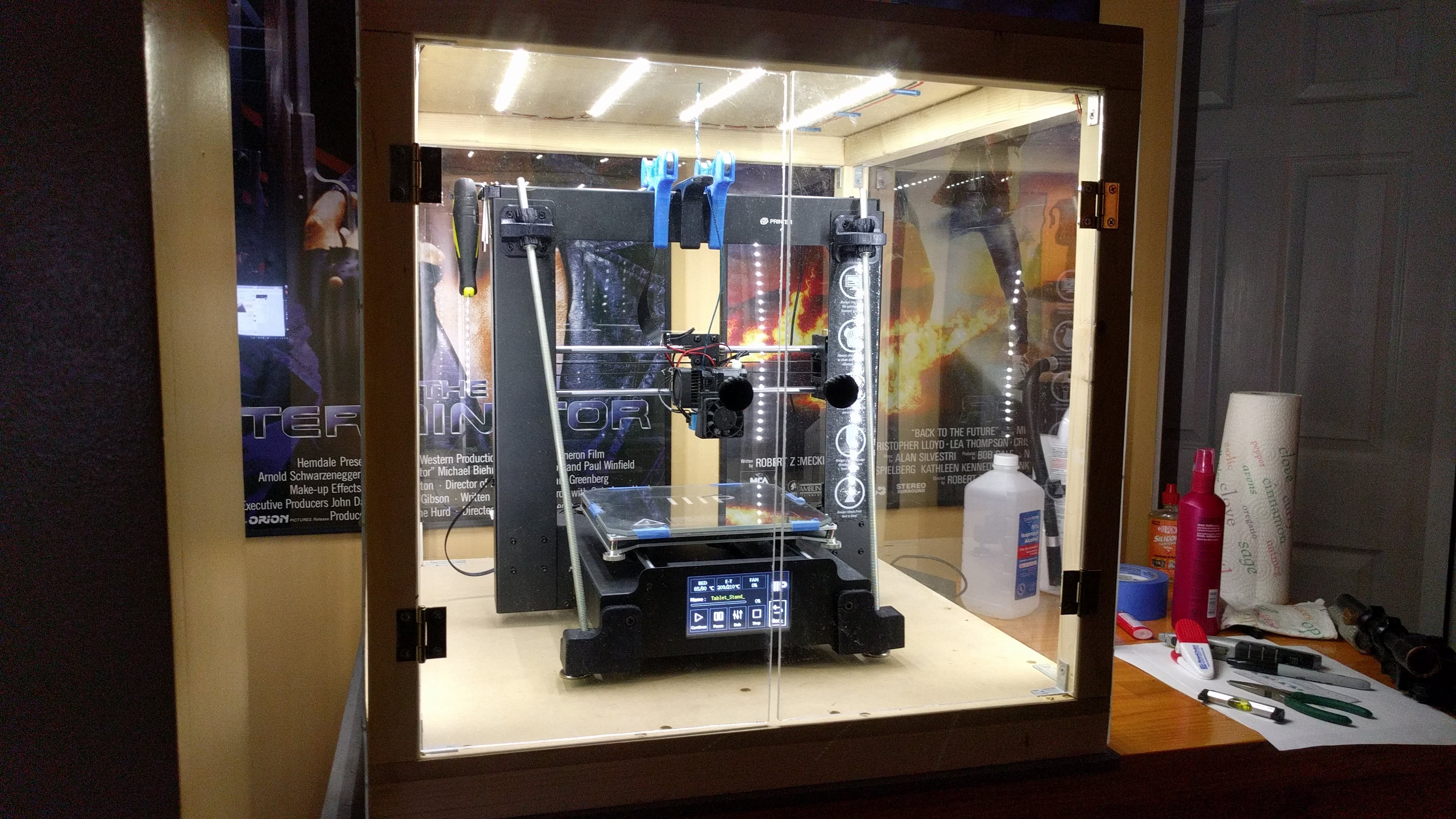Finally finished my 3D printer enclosure for my baby. Yes, it’s all wood, but all internal surfaces were coated with no less than three layers of fire retardant.