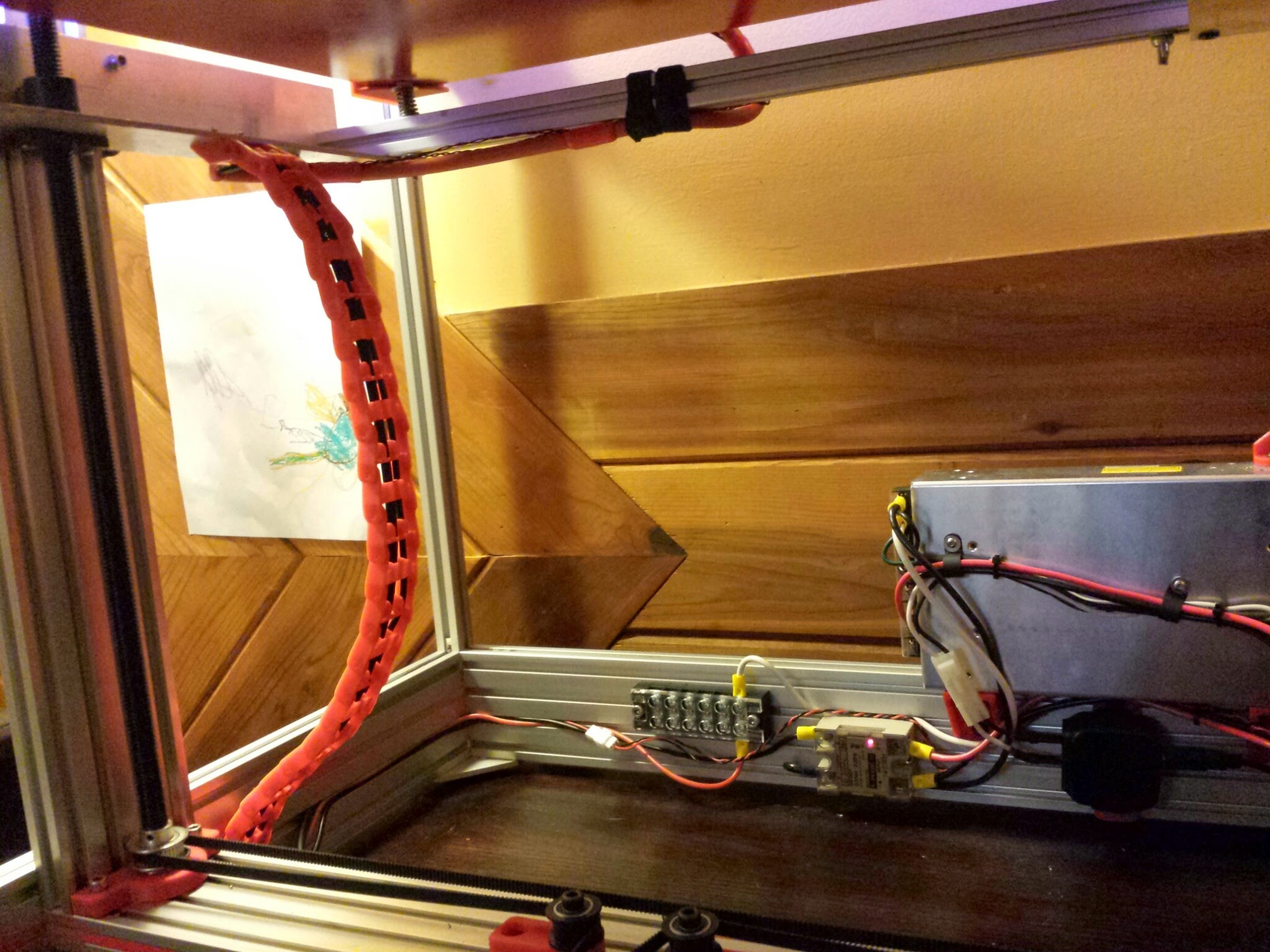 Finally getting around to a little wiring cleanup after my 120v/800w/SSR heated bed upgrade a while back. The printed cable chain worked surprisingly well (a little dab of superlube at the link joints make the motion smooth as butter).