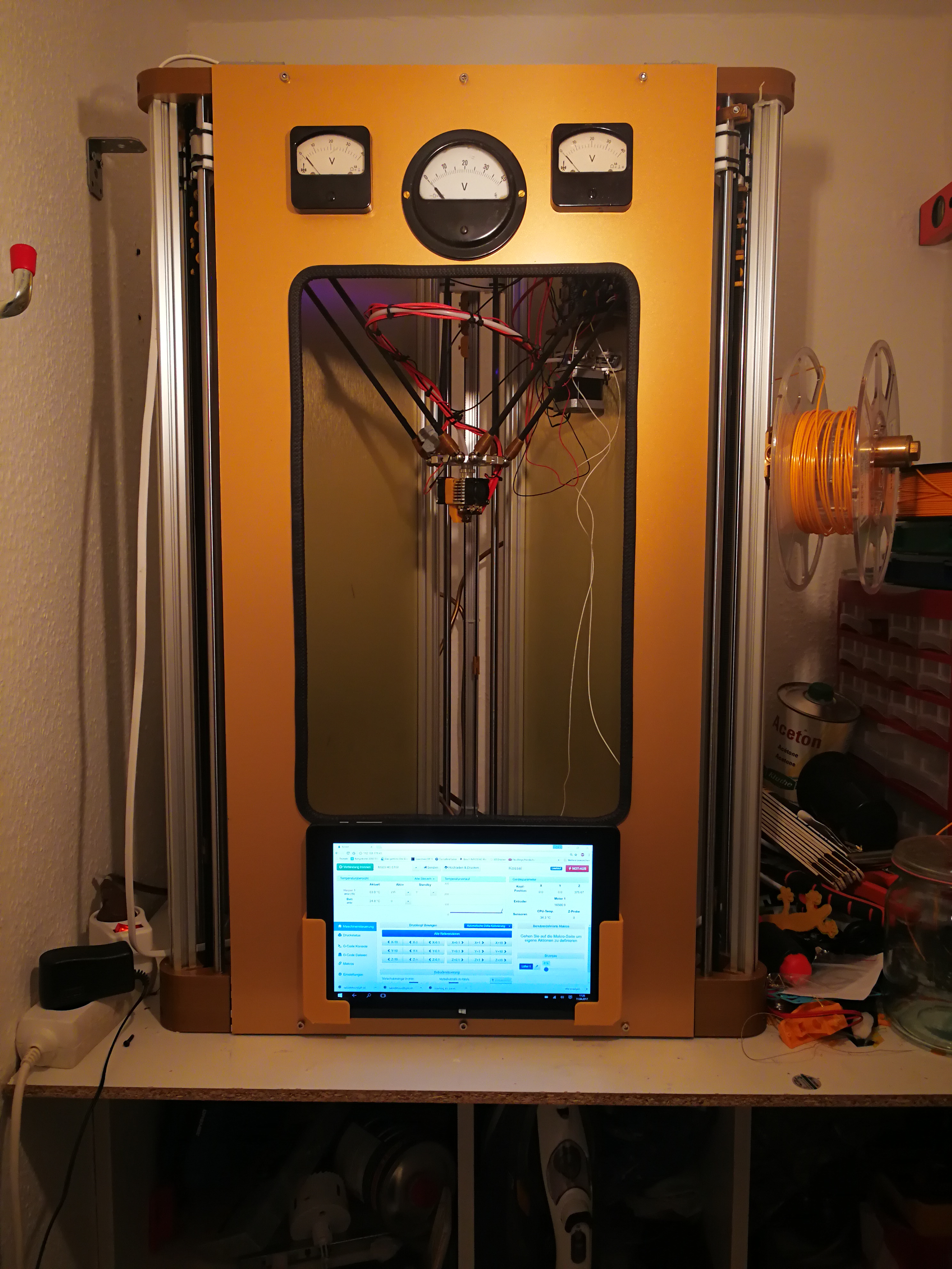 Finished my fifth printer yesterday. Build volume of 300 diameter and 370 height.