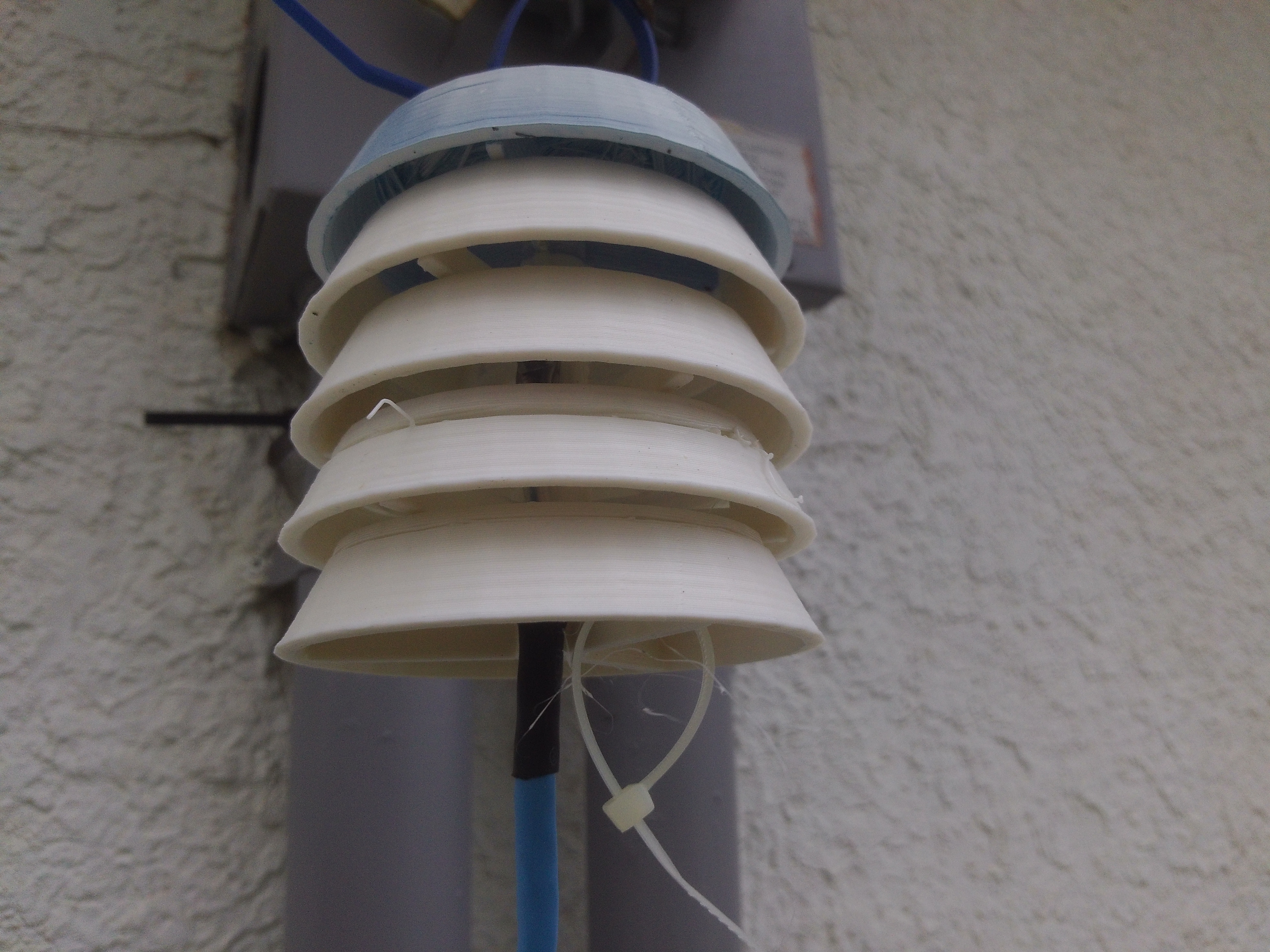 Top with the cap ( http://www.thingiverse.com/thing:342961 ) and hang outside. Feed the temperature sensor up the bottom and secure with wire ties.