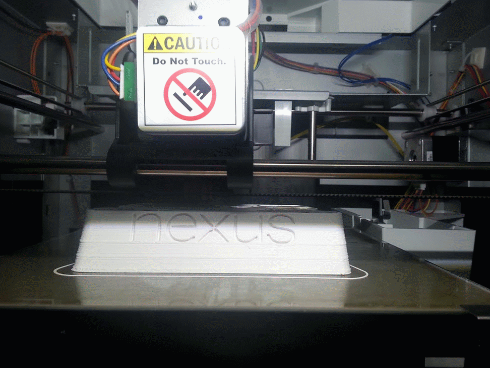 Finishing up my first print on my xyz da vinci. Nexus 10 pogo charger dock. .2 mm thickness, medium density, normal speed. Looks like I will need some post production sand paper.