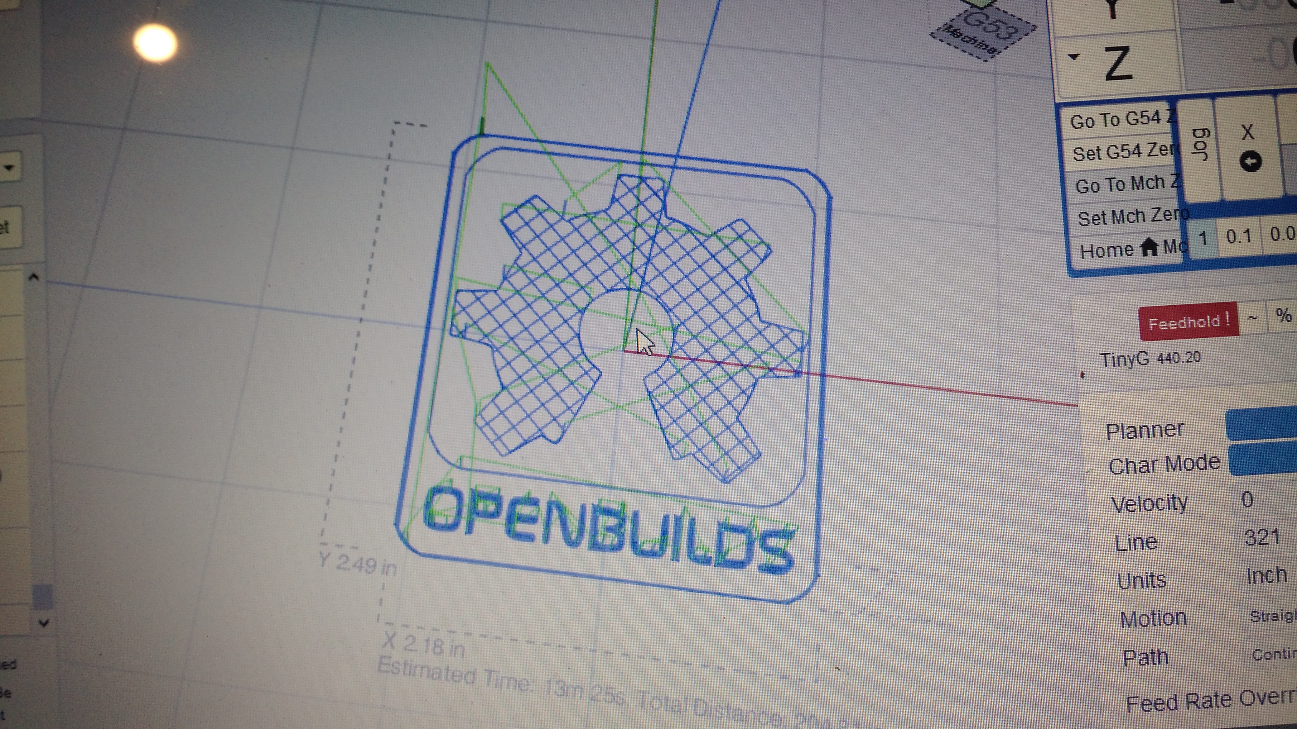 First actual “cuts” on my SMW3d large Ox running a TinyG with Chilipeppr