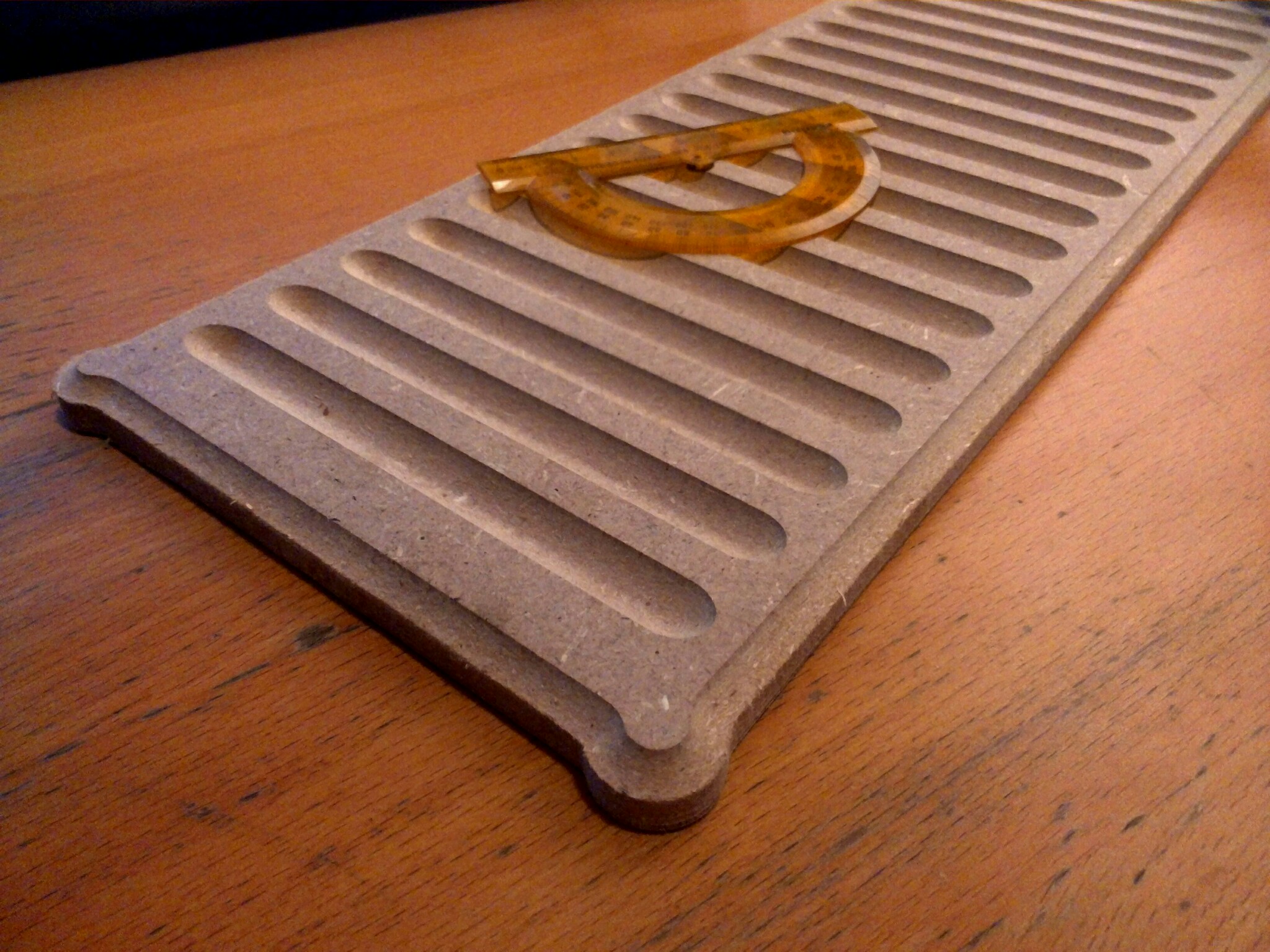 first milling with a new 12,7mm ballhead in soft MDF. Fluting and bevelling is a lot of fun with it. The result is repeatable good, the corners are sharp and with a nice concave.