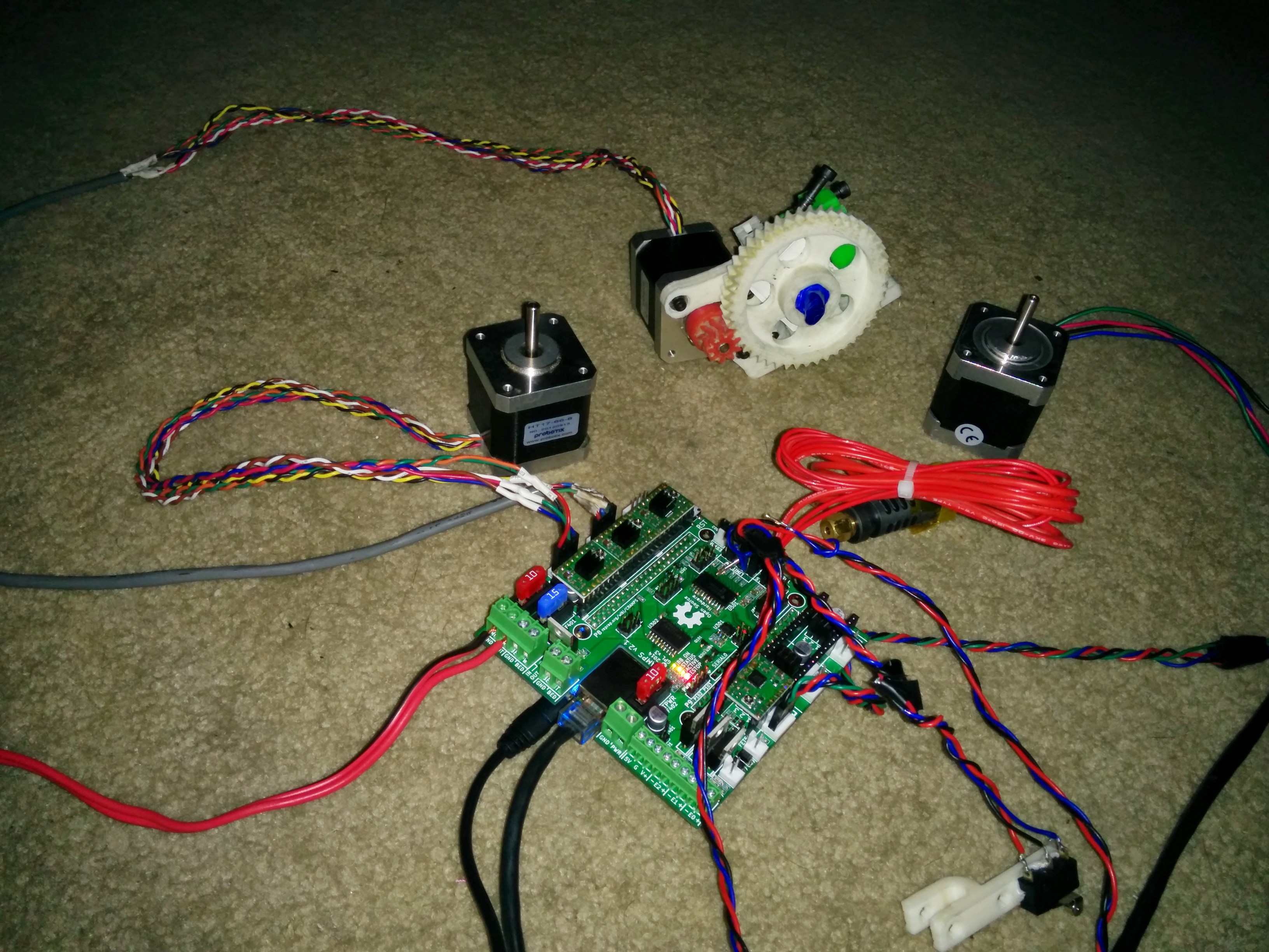 First Test of the CRAMPS last night works with the standard trivial kinematic module in LinuxCNC. I havent tried to heat up a hot end or bed with it yet though. I bet that could get interesting.