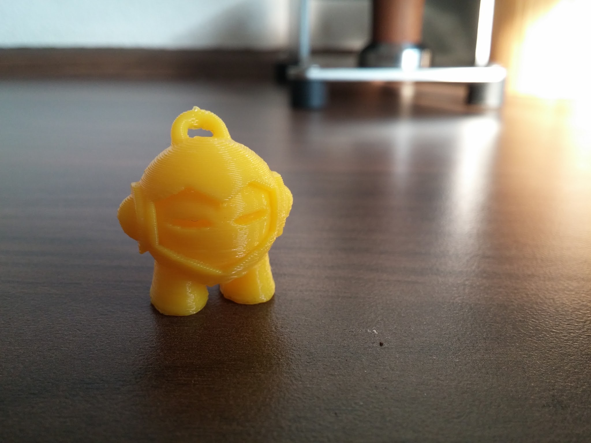 First test prints on my homemade printer, no tweaking. Both with 0.2mm layer height, PLA @ 215°C. I don’t have a fan for cooling the printed part yet, so I guess that I can improve the overhang details. Some ringing visible on the cube, but I suspect vibrations from the stepper.