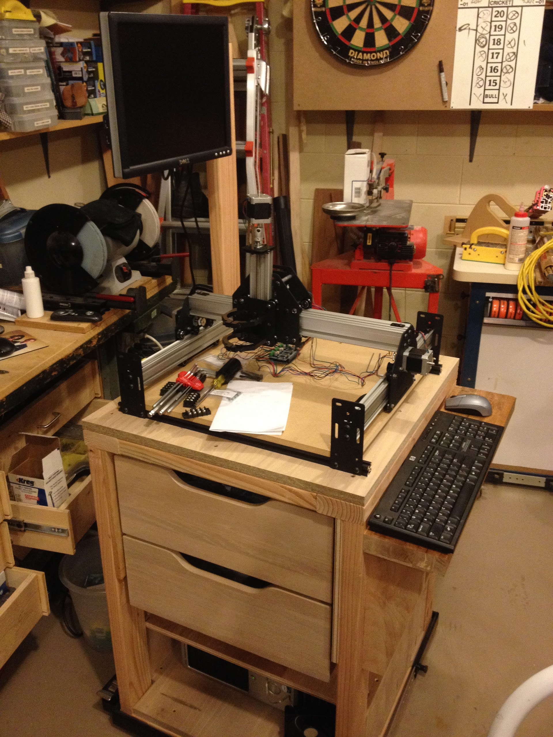 First weekends progress. Managed to make a cart the weekend before ad use some old drawers. Just closing in the PC on the bottom shelf with some filters to minimize dust.