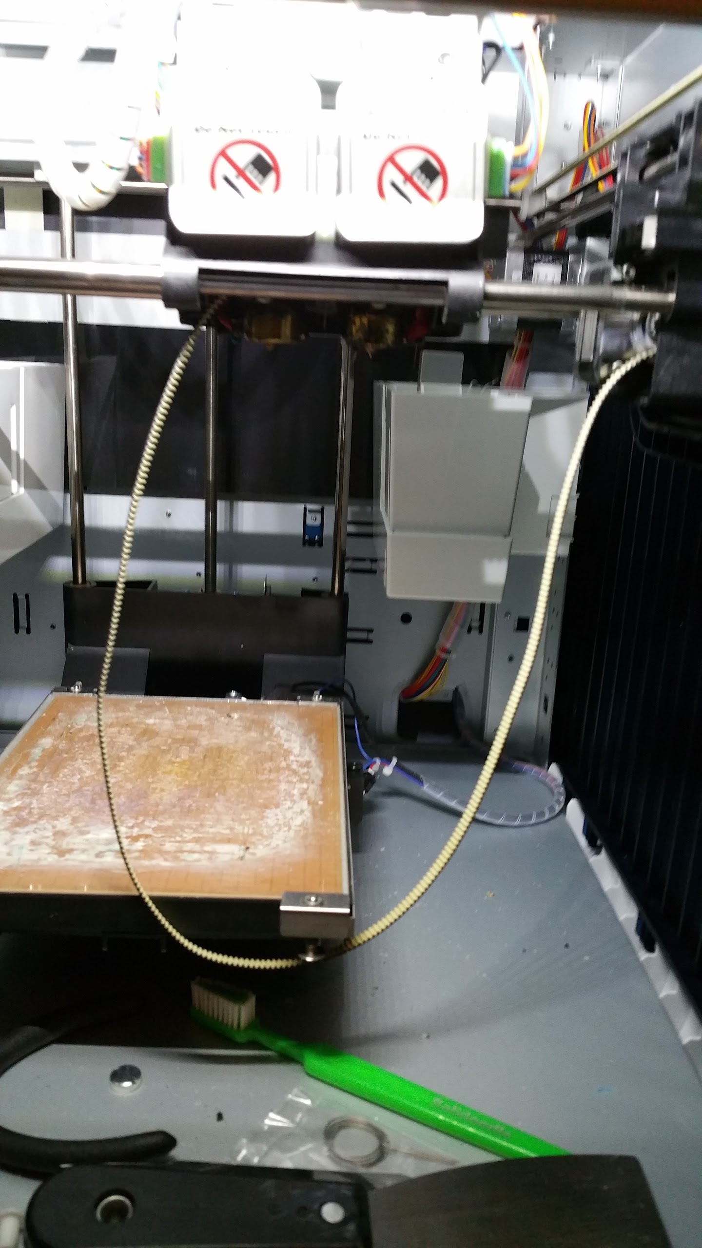 Fixed my Da Vinci with the tensioner out of Thingiverse (http://www.thingiverse.com/thing:805215). i ditched the spring and it’s been working for 2 hours straight so far. XYZPrinting said they will replace my tensioner even though I am 1 month out of warranty, so hat’s off to them for that (although they do not know when the part will reach me). Meanwhile, I am back in operation. You can see the before and after. I think one should have more than one printer…so that one printer makes parts for the other…