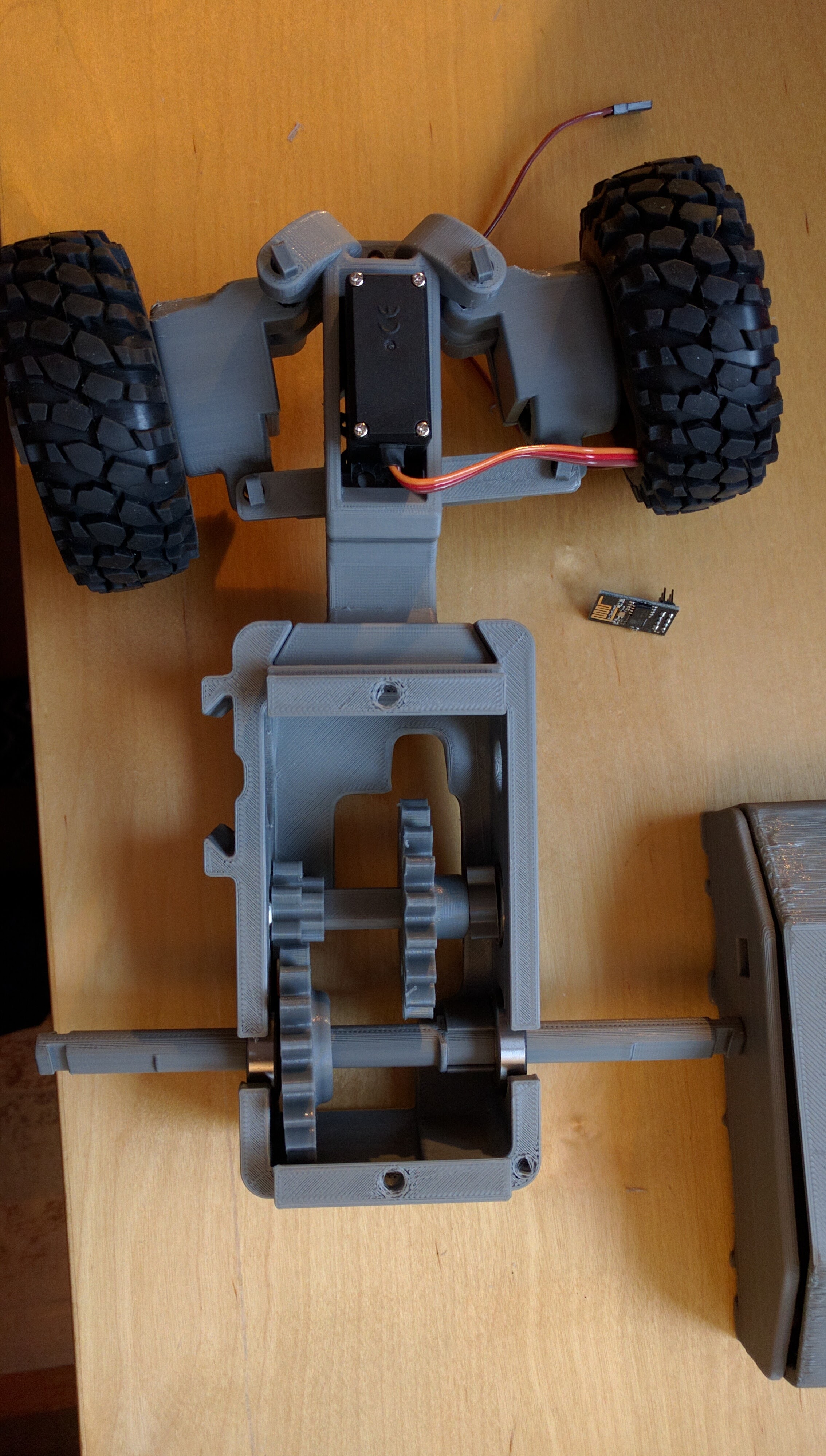 Flutter scout looking more like a car! Printed on Printrbot Simple Metal. Waiting on RX from Amazon. @Printrbot @Taylor_Alexander