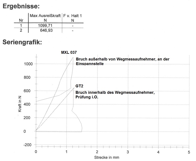 @Sven_Eric_Nielsen I’m 100% with you. But I don’t know the properties of the 2GT belt, because it isn’t branded. And until now, I don’t know the specs of the later used GT3 belt either (I have asked http://gates.com directly, also the vendor I bought it from, still no answer) So, noone knows for real. I know about a test a german http://reprap.org user did, very similar to the one @ChPech linked. He tested a noname-6mm-2GT vs an MXL-9mm. Not very fair, I know, but it did show the overall “stretchiness” of the 2GT belt, too. Graphic attached. What I want to say: It is striking, how much the nonbranded 2GT belt stretches, constantly, until it snaps, right from the start.