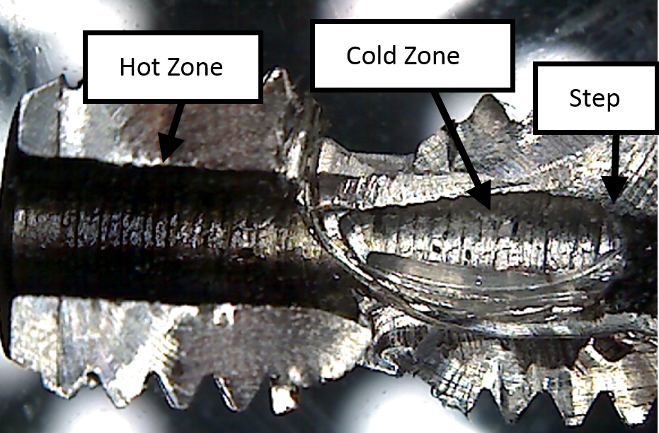 Photo 2: Microscope shot of the actual cold zone jam. I pried this out of the cold zone from right below the misplaced step. With ridges like that, no wonder it wouldn’t move…
