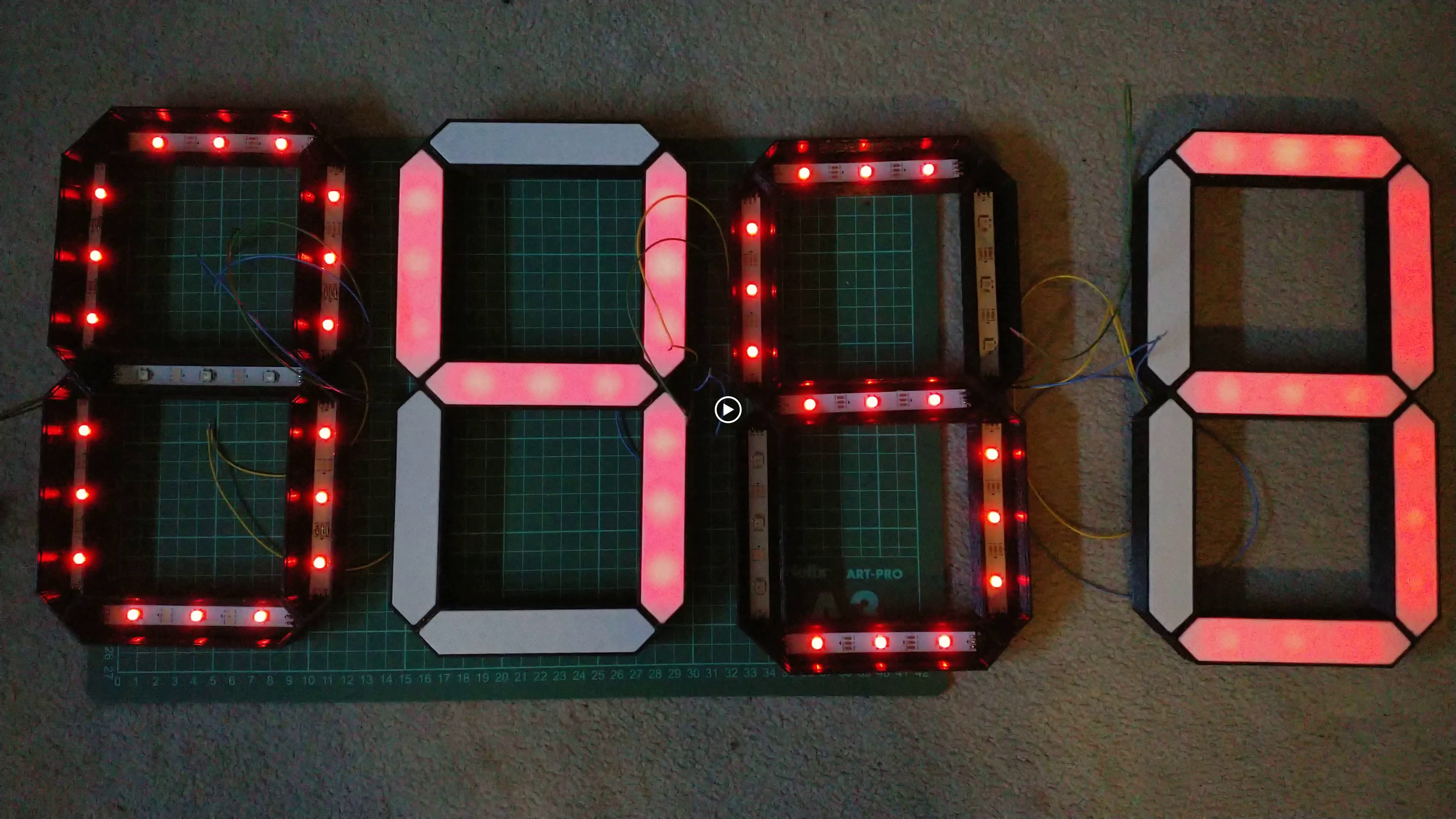 For ages I have wanted to have a large scale LED digital clock for my room ever since I saw 4" 7-Segment modules. Decided to use addressable LEDs so I can have colour options and along with my 3D printer.