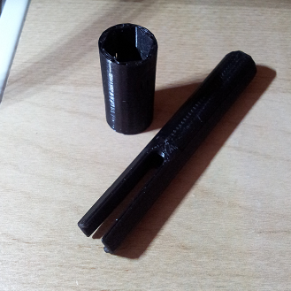 The design is in two parts. A barrel that fits over the pencil, and a lock that slides from the back and clamps the barrel in place.