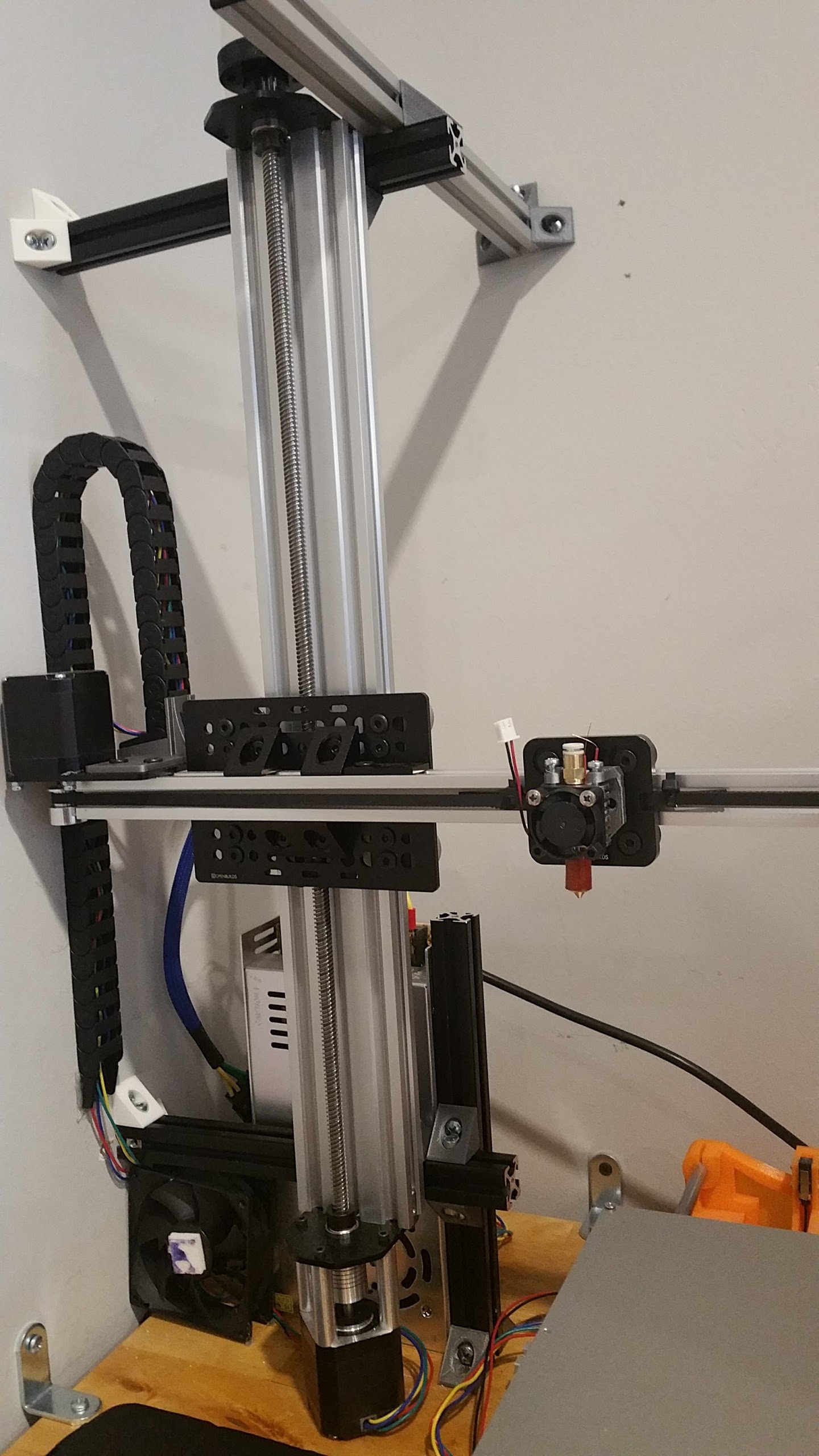 interesting thing to bolt the z to the wall. must have insane stability probably could get the machine to run fast, if it is all as stable. i have a few troubles on my simple metal with z wobble and that the machine shakes a lot when printing above 40 m/s especially with the bed upgrade i never go over. im always afraid that the heavier bed will cause the belt to de-attach mid print and im never home to watch my prints.