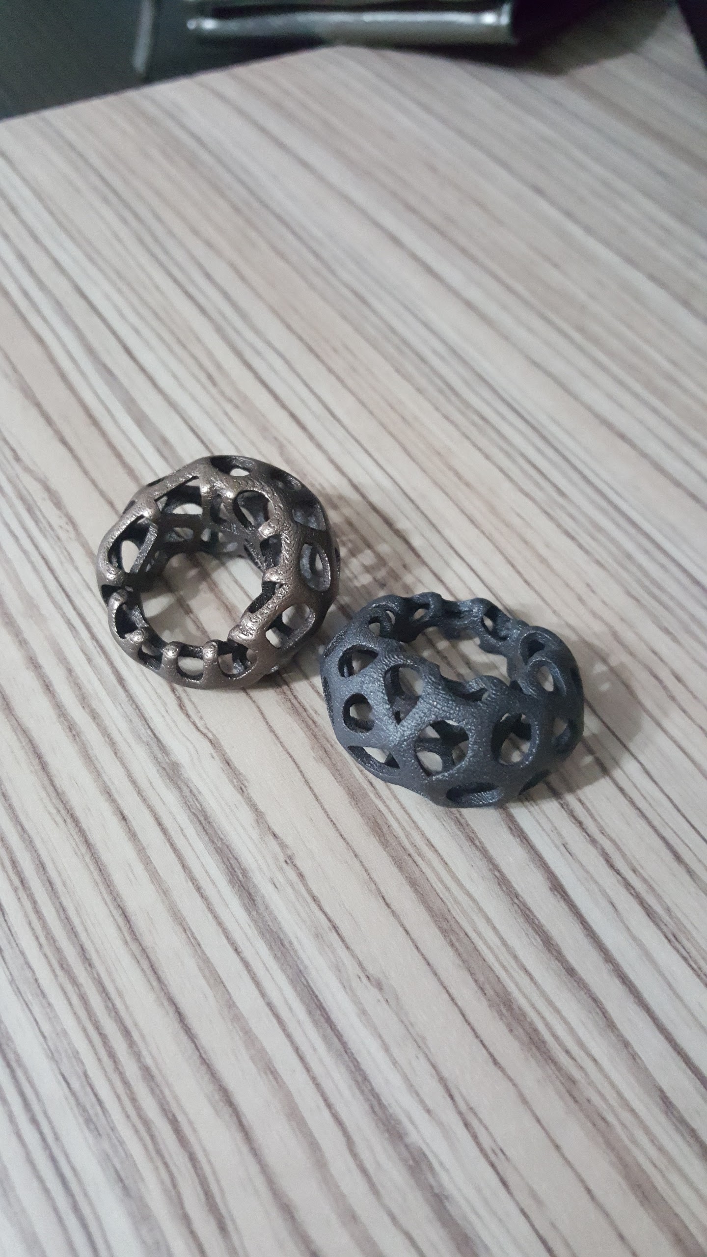 For the wife. Designed in Rhino Grasshopper, 3D printed in Shapeways metal. Very good value for a unique product.