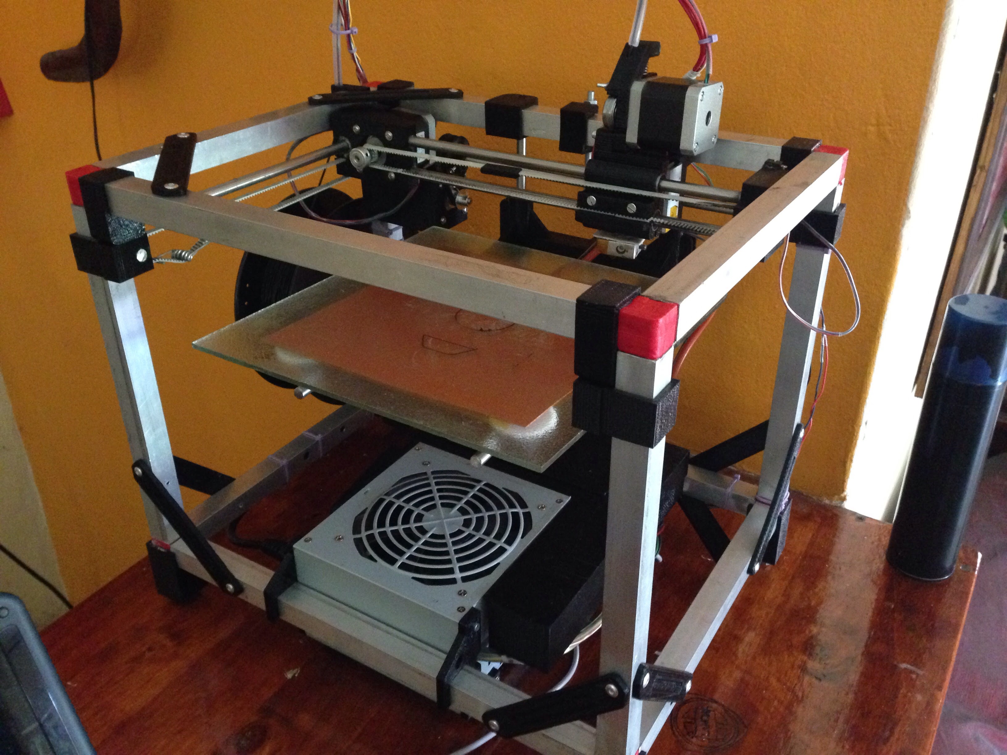 I originally built a couple of smartrap’s the one is a nice little printer but I decided to rebuild the other one into this. Its much more robust printer and uses the standard lengths and bearing off the smartrap some more about it on this fb page.