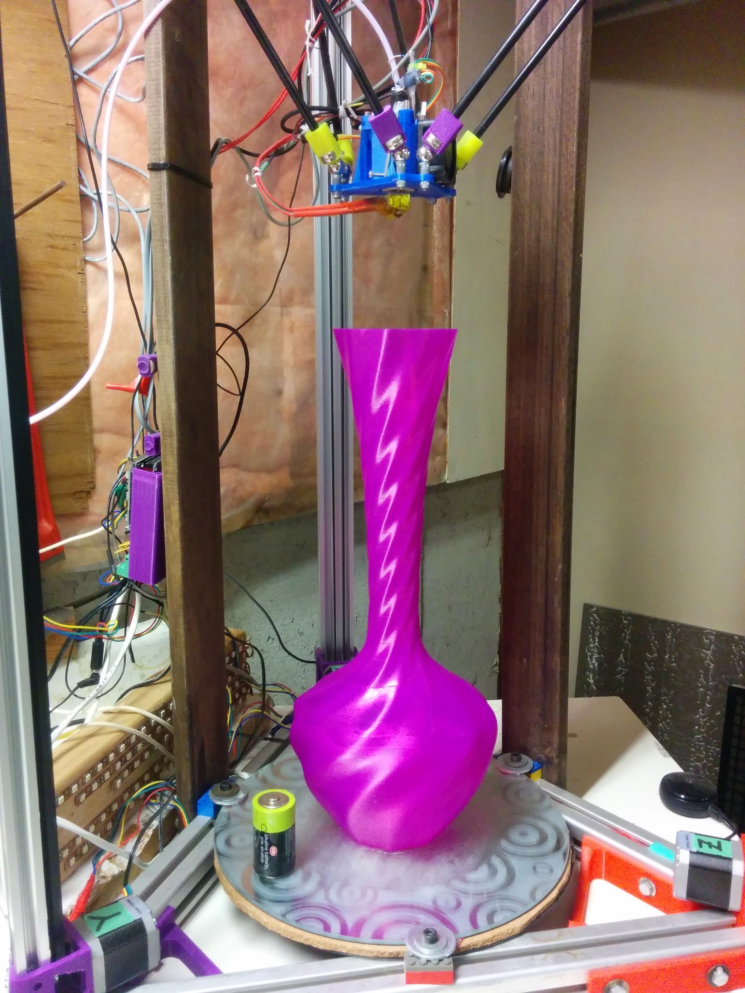 BTW, this took 9 hours. I wanted to give each layer enough time to cool down (PLA). The vase is my design, if anyone is interested, I can post it on YouMagine.
