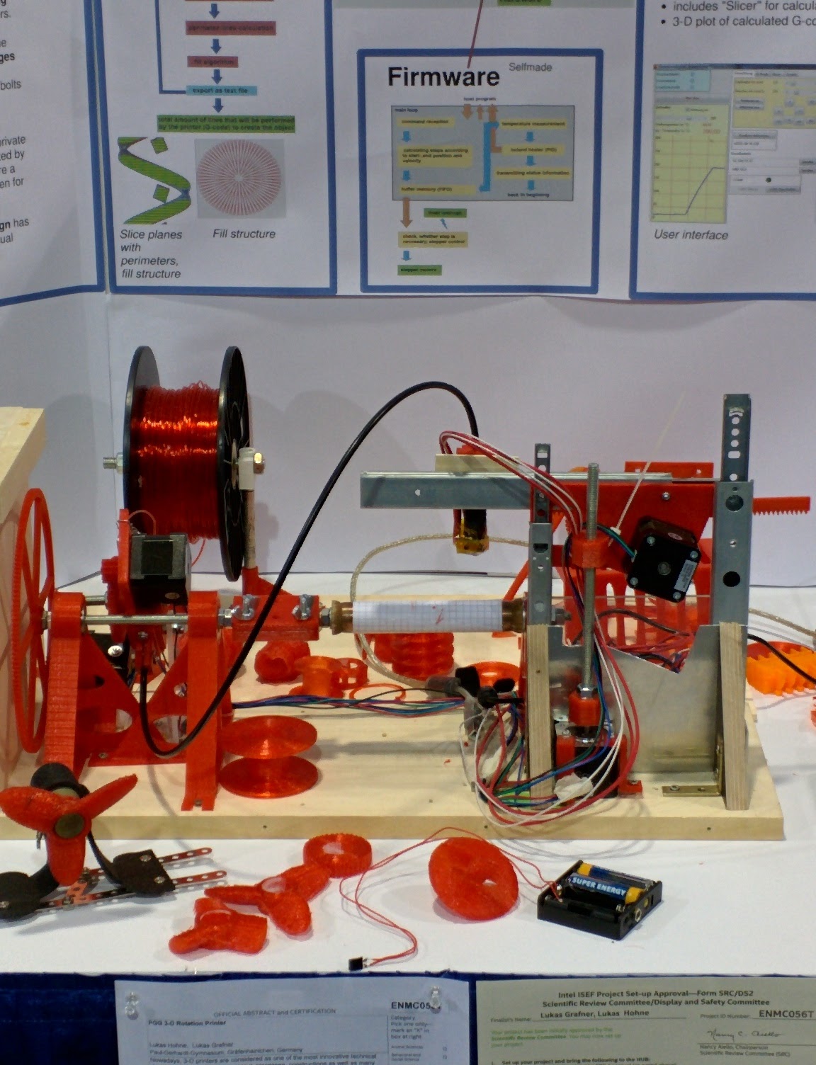 German high school students made a rotational 3d printer, that can print circular things. Very interesting! They presented it on Intel ISEF 2015 in Pittsburgh, PA, in May and got 2nd place. Smart guys, worth attention. @3ders.org