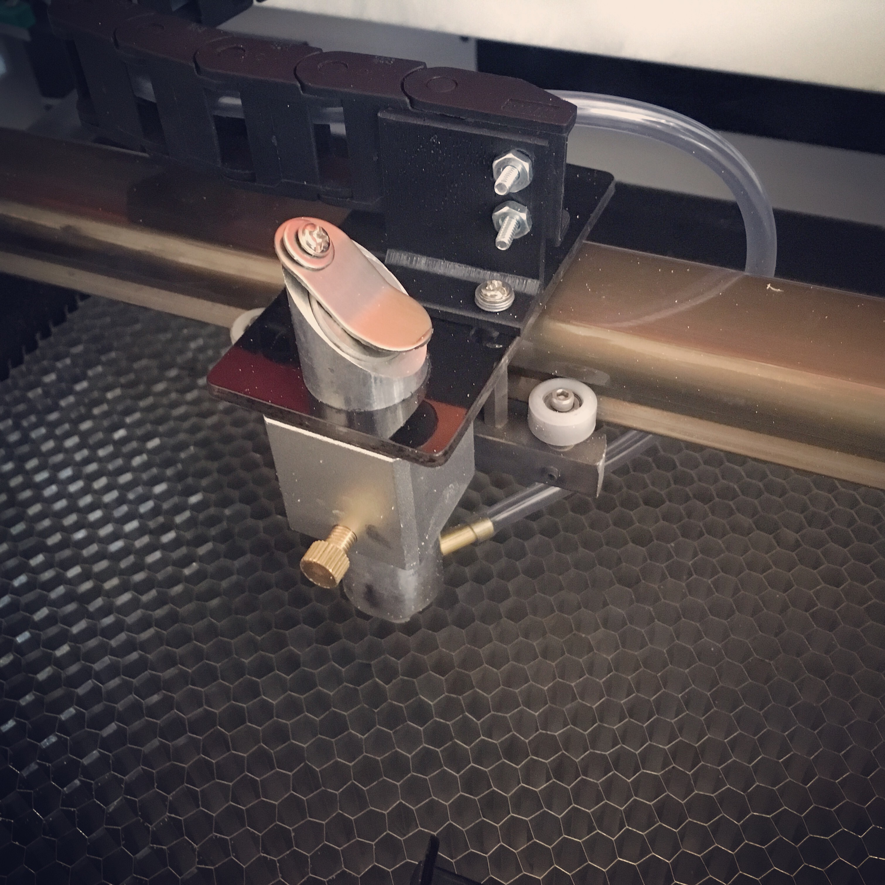 Getting there. New adjustable head, mounting bracket, mirrors, air assist, drag chain, ventilation and honeycomb bed. Just need to install the cohesion3d pcb and I’ll be all set.