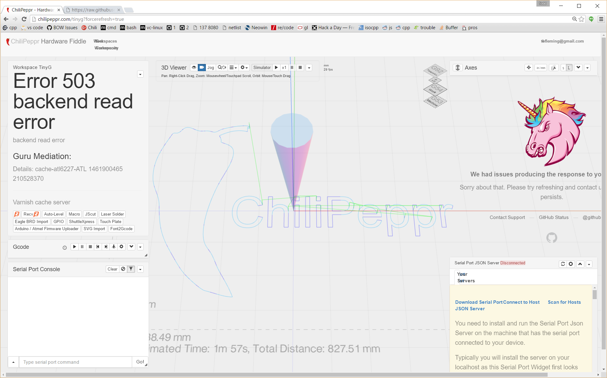 ChiliPeppr has a caching mechanism in Google App Engine to avoid stuff like that happening. Use ?forcerefresh=true non-judiciously. Although, truly, ?forcerefresh=true is intelligent in that if it goes to try to retrieve the file and gets anything than a 200 OK it doesn’t bring it in or wipe the cache. So you should never see an error like that. The only way that can happen is if Github sends a 200 OK with that messed up content.