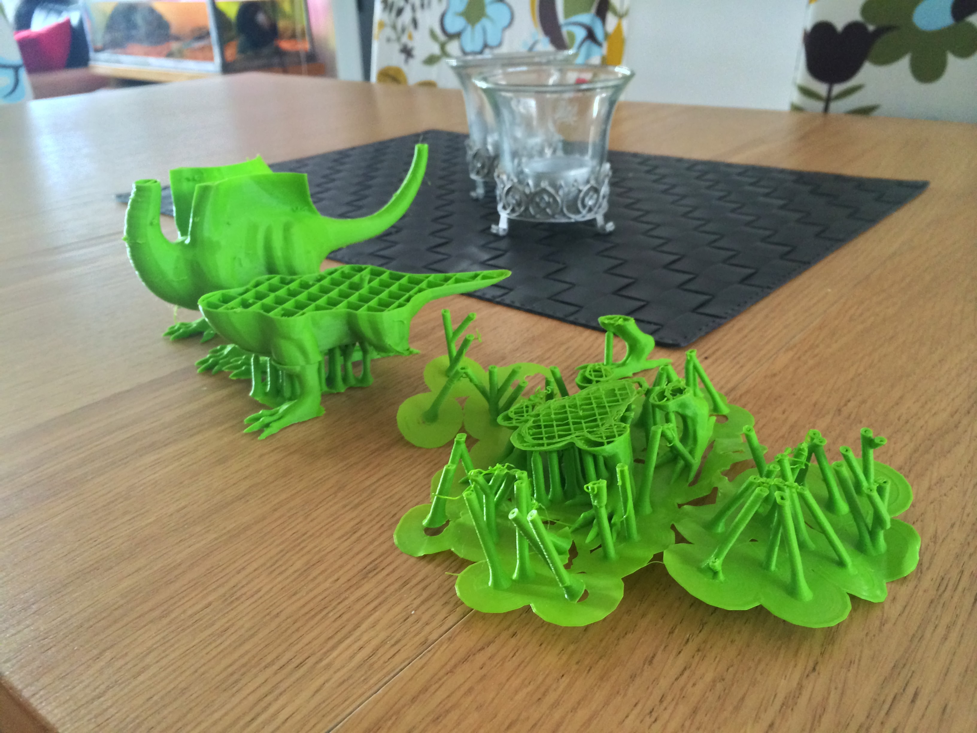 Giving up on my dragon as it won’t print on my @Ultimaker 2 There is a bug in Cura that generates a XY-displacement if using a raft/brim on some models (see just below the stomach) and printing the dragon without brim makes many of the supports come loose during printing. With brim they seem to be stuck nicely to the printbed.