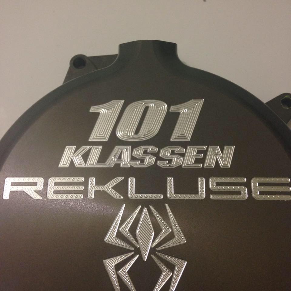 In the middle of a cool project for a local business and Motorcycle Race team. I’m engraving the riders names and numbers above the Rekluse brand name on a bunch of Clutch covers.