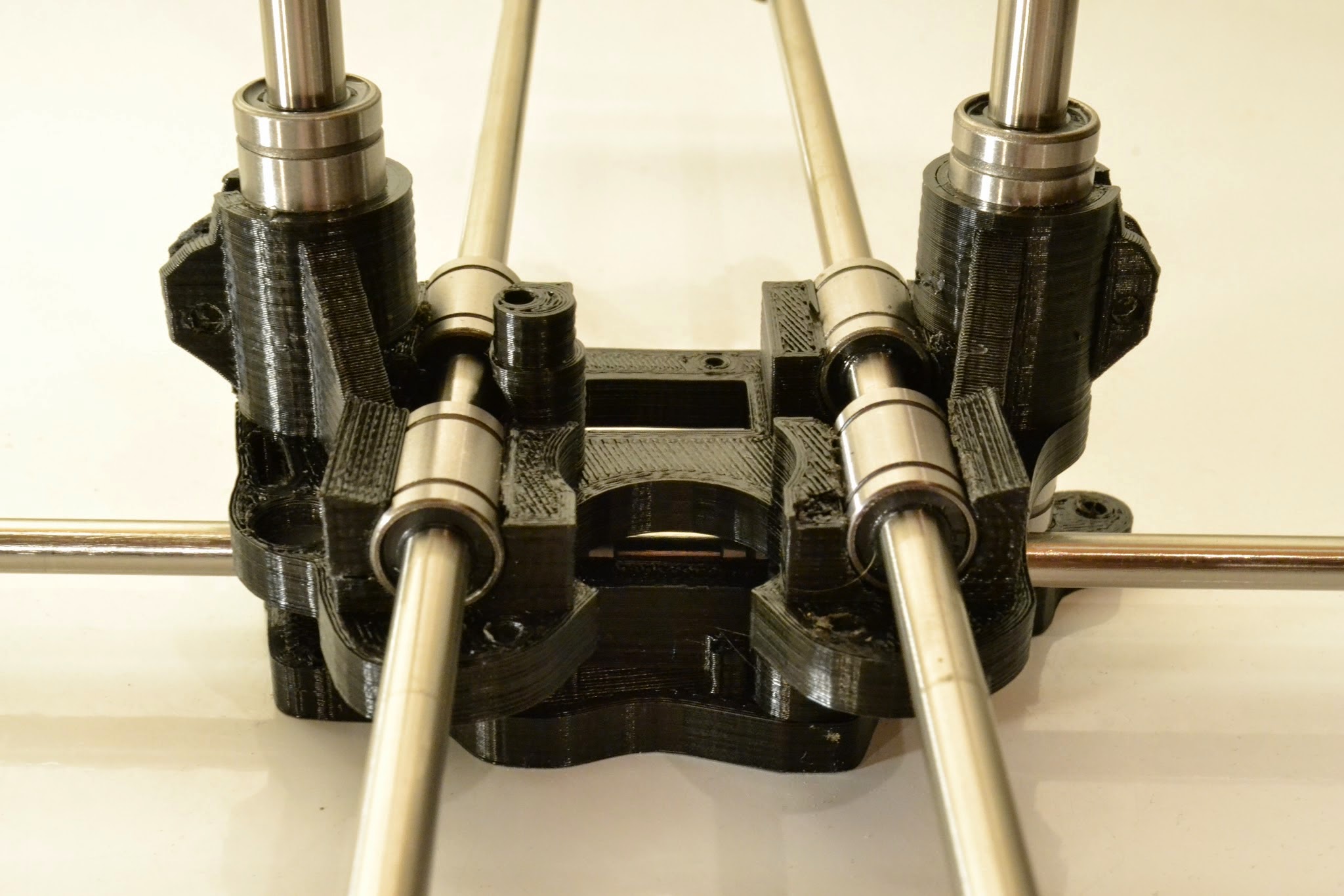 I may have to reprint the Z axis support. It appears that one of the bearing holes is tilted. When I lower it all the way down there is a 2mm gap on one side. The bearings are out of alignment in the pictures because I was trying to adjust it but I dont think that is going to work.