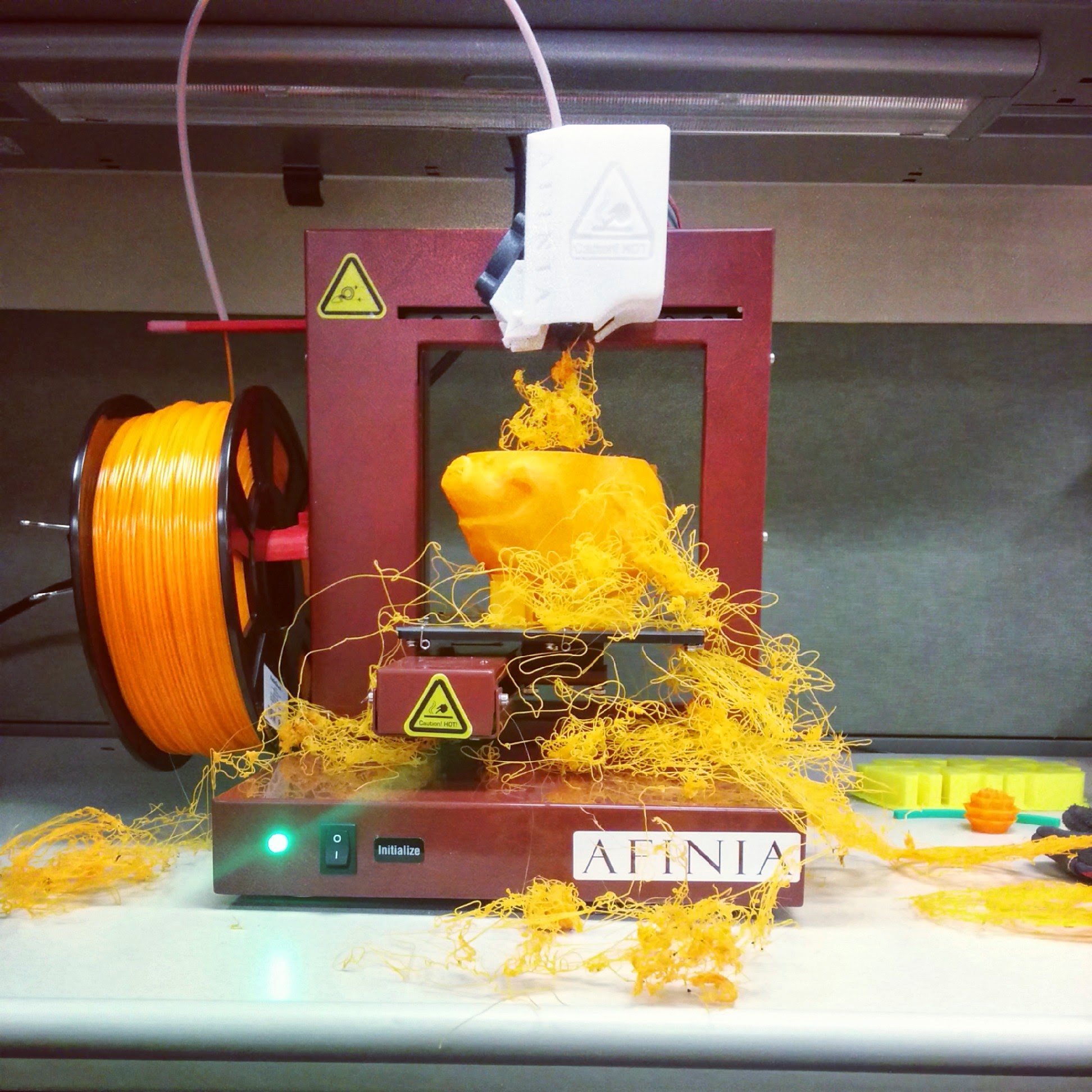 This has happened to me with my Afinia as well. Print was moving along nicely, so I took the dog for a walk. Got back and found a rats nest.