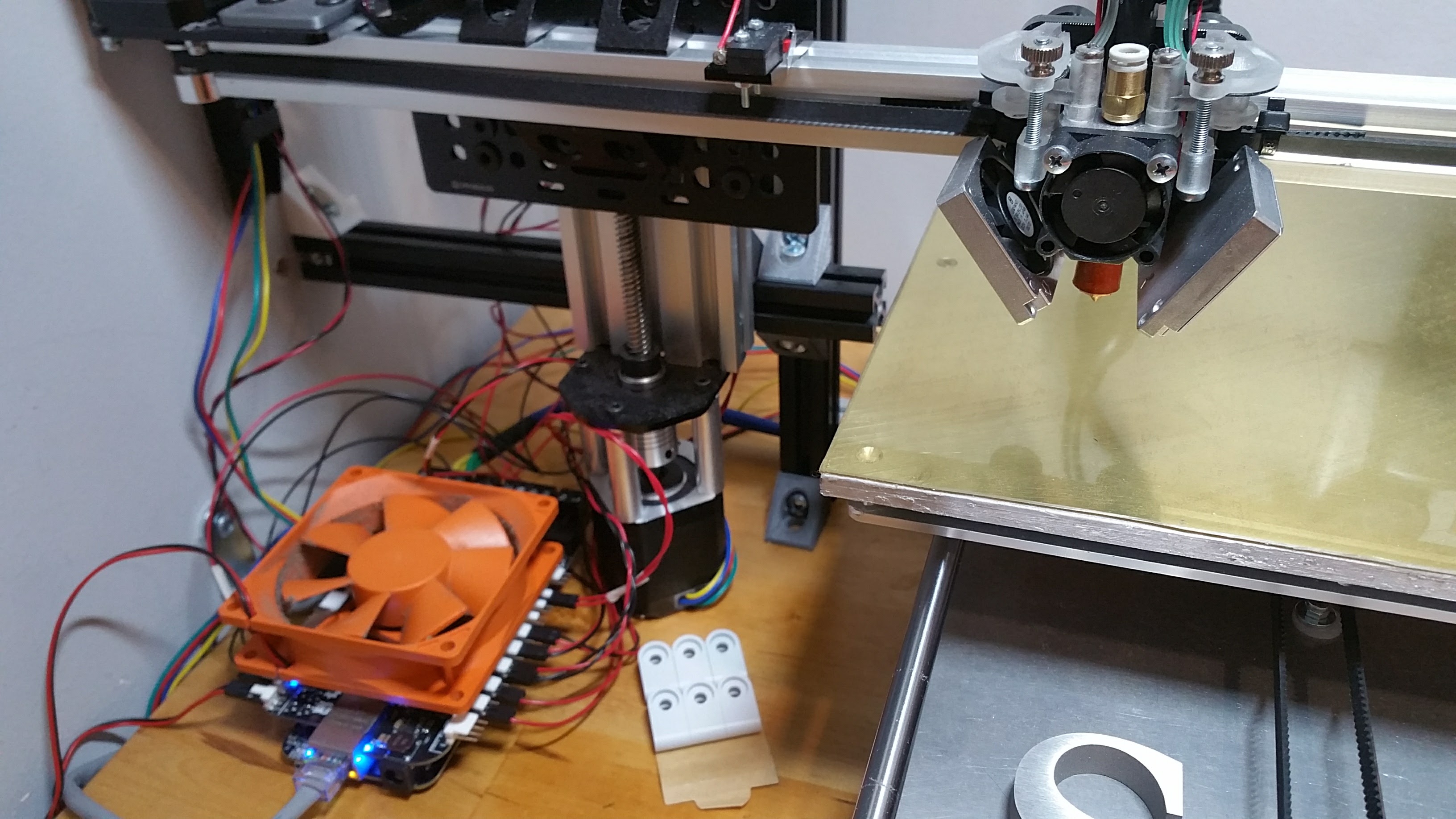 Got all fans hooked up and tested. The loudest of all goes to… @Deltaprintr heatsink fan. The 2 slim blower fans and orange fan are dead silent and would play very nice with TMC2100. The heatsink fan has got to go…