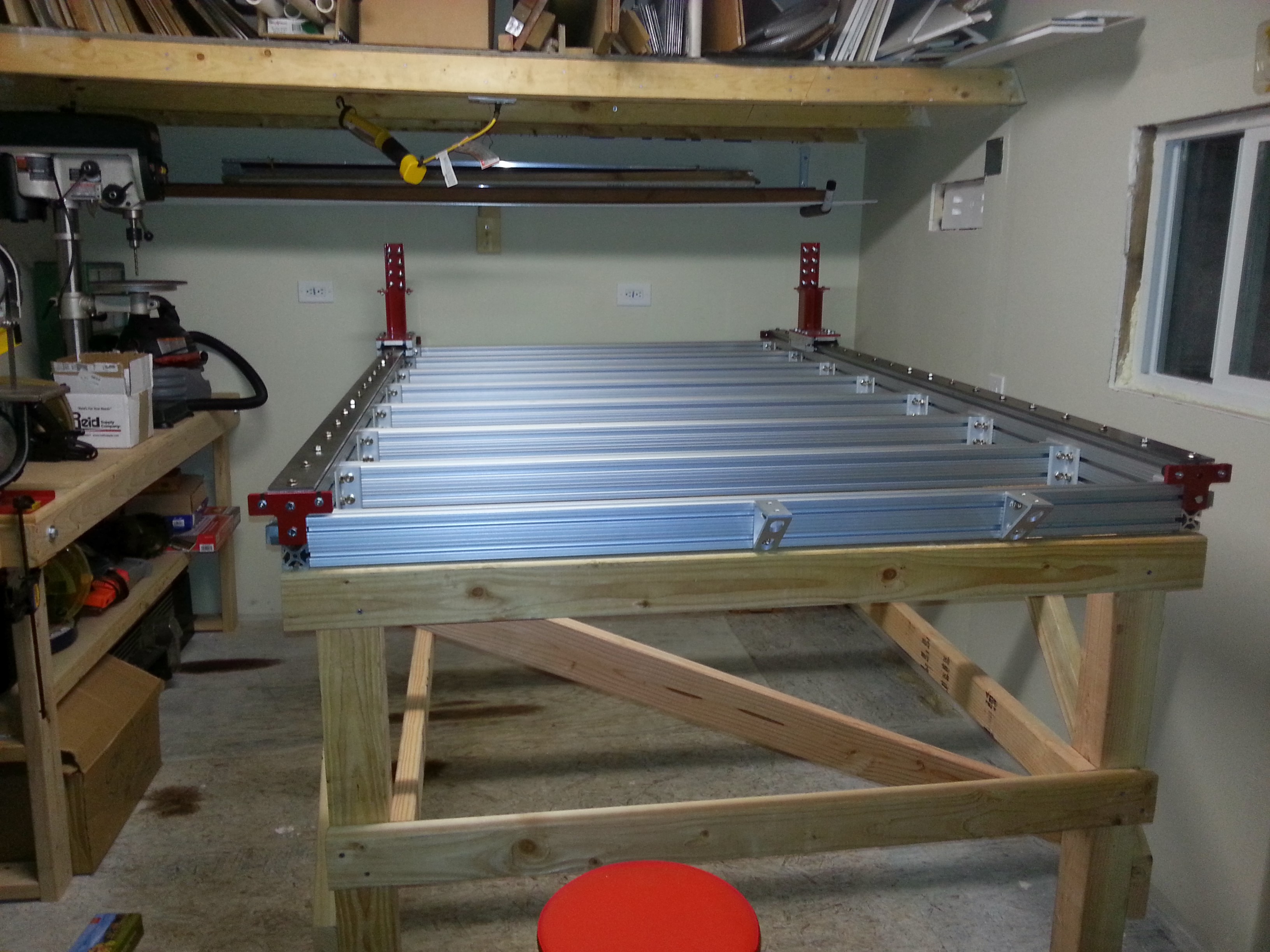 I have the same table in my garage. Just food for thought, my X motors hang out about 6" beyond the steel tracks and my z motor runs up to 18" above the gantry.