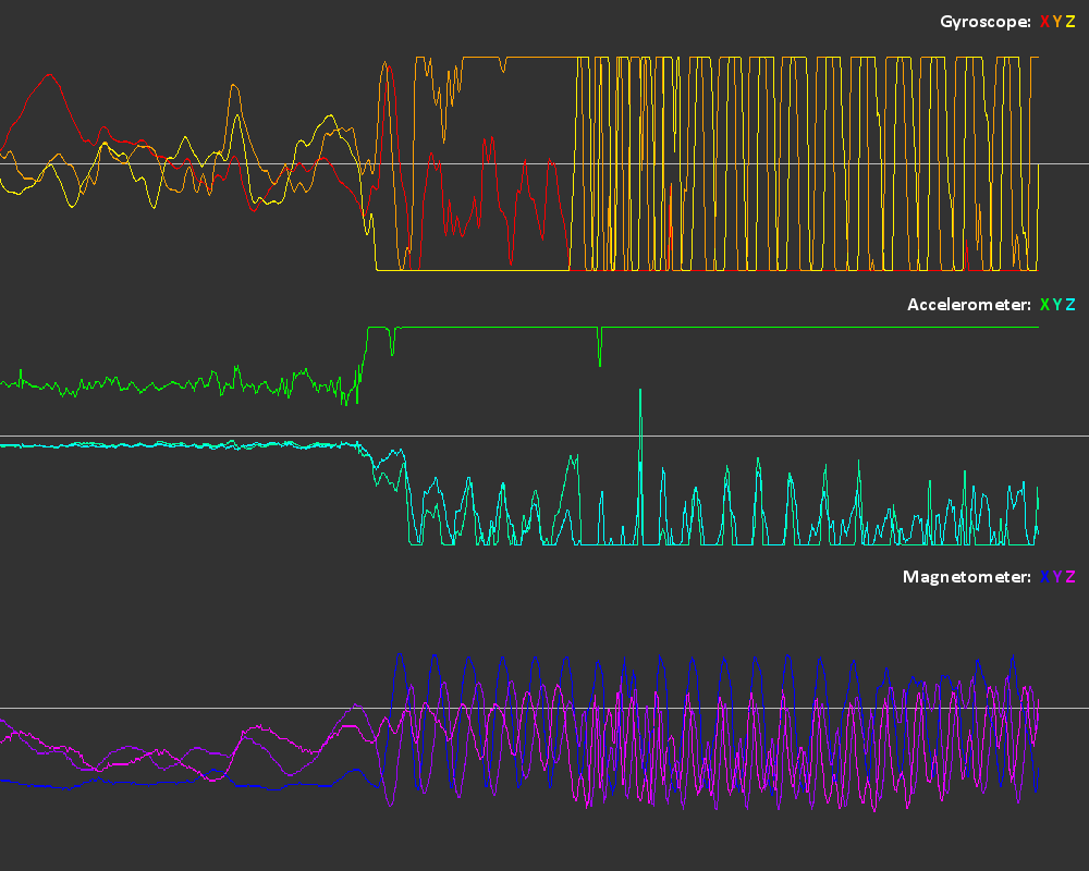 Guess what I’m playing with. I literally grabbed the USB cable attached to the Micro on a breadboard and started spinning the thing in mid-air. While it’s not an accurate test, it is giving me lots of pretty pictures to look at. I need to figure out exactly how to process the information here. I think I may also rig everything up inside of an untethered tube and see what kind of data I get then. I’ll have to figure out how to get the data. As much as I love watching live data, untethered means needing to log it first, process later. FYI, this is an LSM9DS0, three sensors in a tiny 4x4mm package.