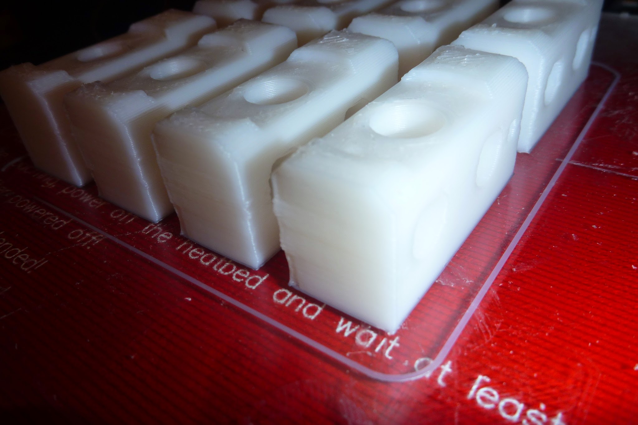 These are i3 y-corners, printed on abs, 0.3 layer, arcol 0.5@240c. External perimeters 50, internal 60, travel speed 150, gt2 belts on a i3.