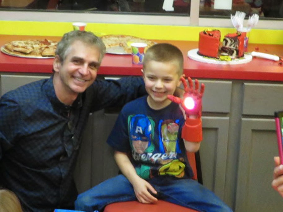Eight year old Iron Kid Tyler gets the 3D Printed Iron Man Prosthetic Hand for his birthday. This was the best day ever, and look forward to continuing development of the hand with Tyler, and his amazing family. ~Pat